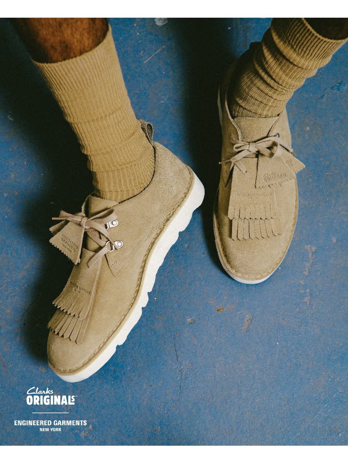 鈴木大器の手掛ける〈Engineered Garments(エンジニアド ガーメンツ)〉と、〈Clarks Originals(クラークス オリジナルス)〉が初となるコラボレーションを発売いたします。