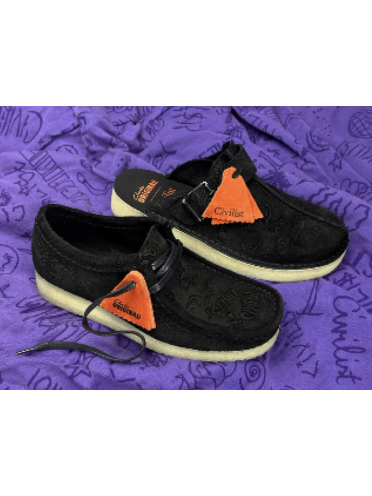 どちらのスタイルもブラックのスエードと同系色のデボス加工が施され、近くで見ると複雑な落書きのディテールを堪能出来る。