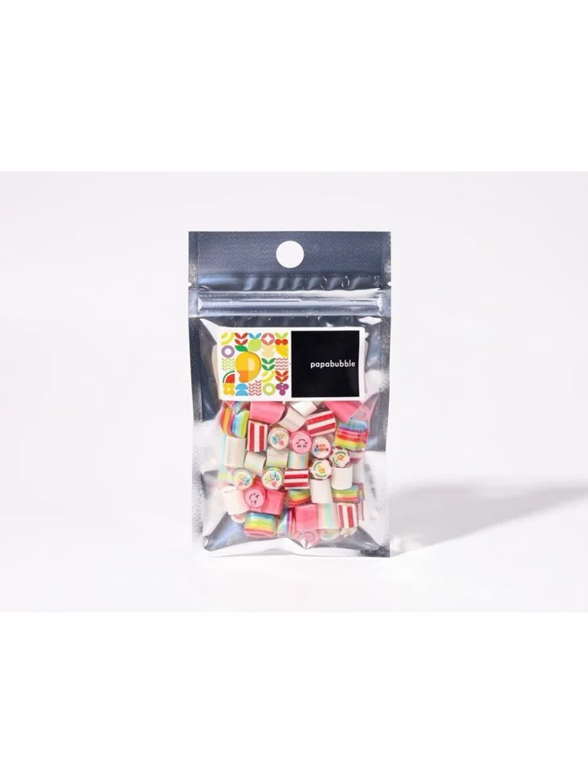 パパブブレ発祥の地であるスペイン。その本店があるバルセロナをイメージしたキャンディミックスです。細かく難易度の高いサグラダファミリアの柄は、職人技が光る完成度です。光にかざすと透けて綺麗な柄は、スペインタイルをイメージしたデザインで仕上げています。パパブブレの歴代で人気の高い、5種類のフレーバーで揃えました。