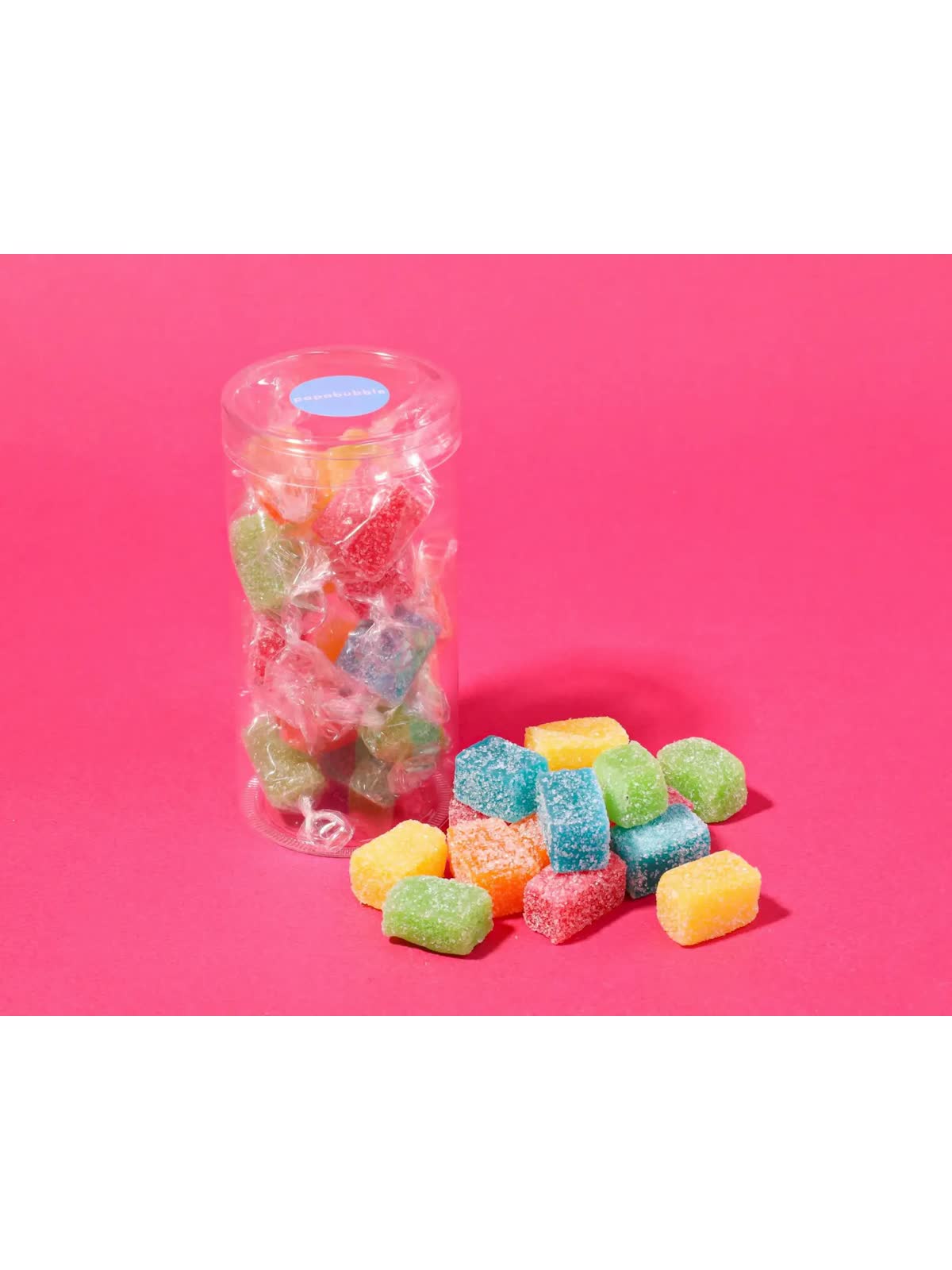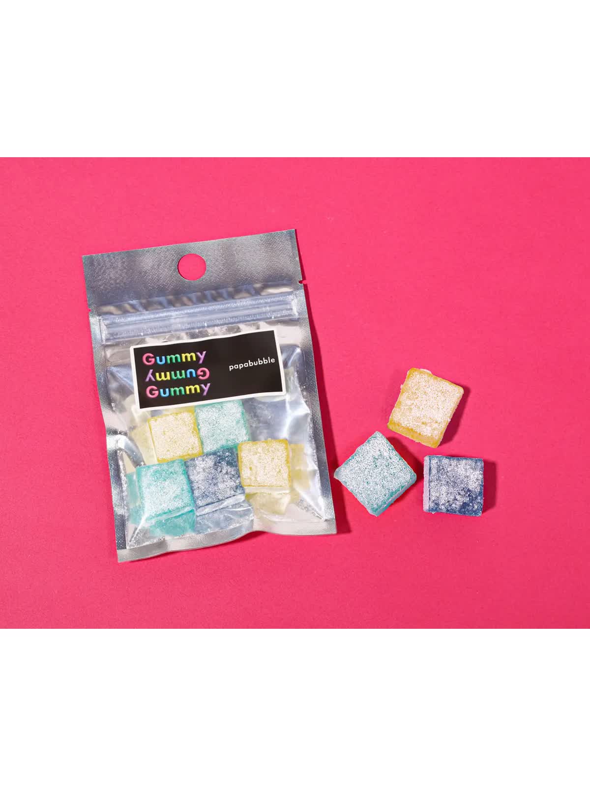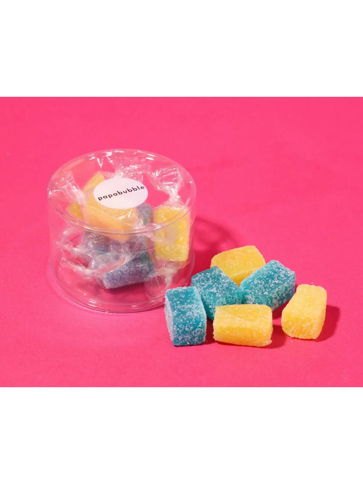 ジメジメとした気候が続くこの時期にピッタリな、ひんやりとした感覚を楽しめるちょっと変わったグミです。昨年好評だった、ひんやりとしたグミを改良し、四角いグミの周りに、砂糖とひんやりするパウダーをまとわせています。いつもとはちょっと違う、変わったグミを求めている方におすすめです。