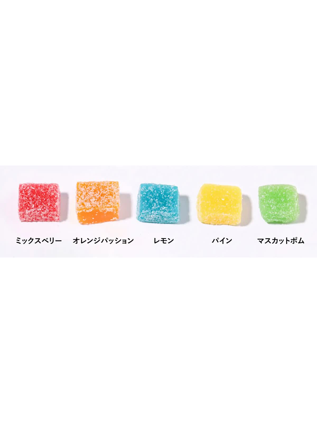 リッチなフルーツ感を表現するために、濃縮した果汁を使用したプレミアムなグミです。スペイン産のイチゴや、マンゴーの王様であるアルフォンスマンゴー、山形県産とスペイン産の洋梨をブレンドした濃縮果汁等を使用した、どれも芳醇なフレーバーのグミです。ジューシーなフルーツ感たっぷりの味わいをお楽しみください。