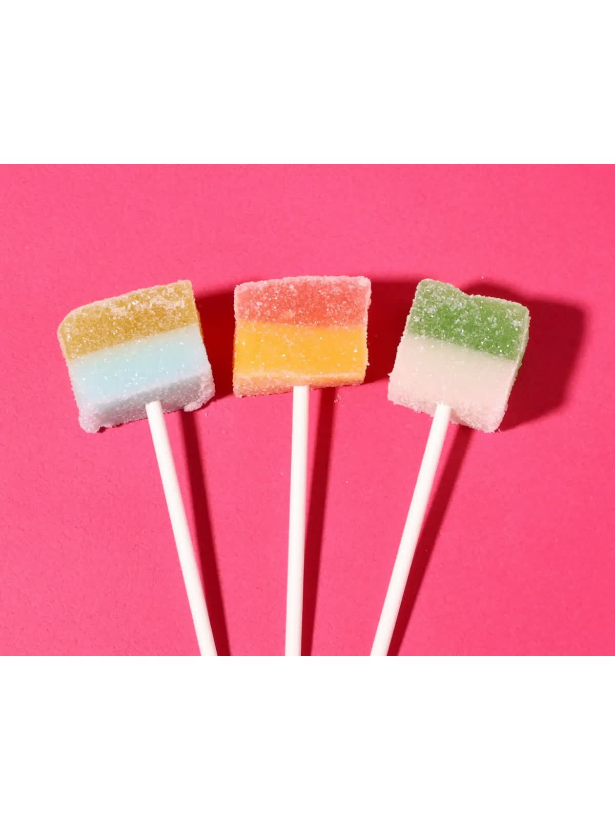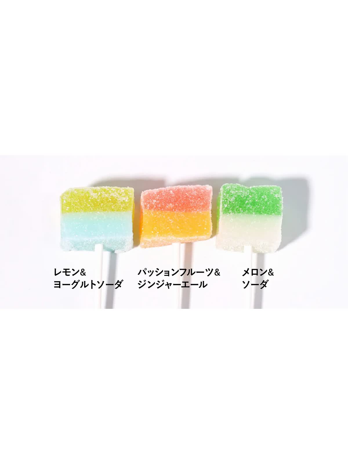 ソーダとフルーツのフレーバーを合わせた2層グミです。不透明なほうがソーダ系、透明なほうがフルーツ系のフレーバーでご用意しました。2つの味を一緒に食べることでさらにおいしさを味わえる、1本で3度楽しめる商品です。