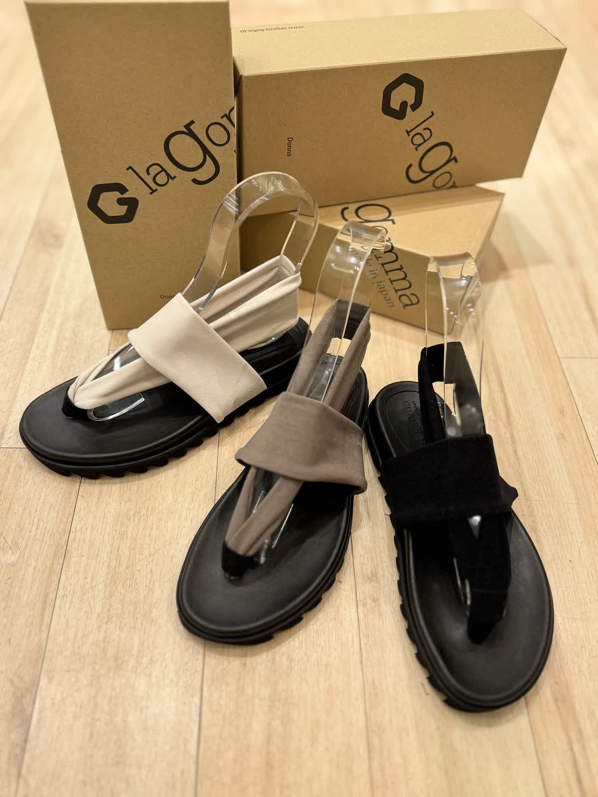 イタリア語のGomma(ゴンマ)=ゴムに由来した縦横無尽に伸びるストレッチ素材を使ったデザインが特徴の日本製のオリジナルブランド。
