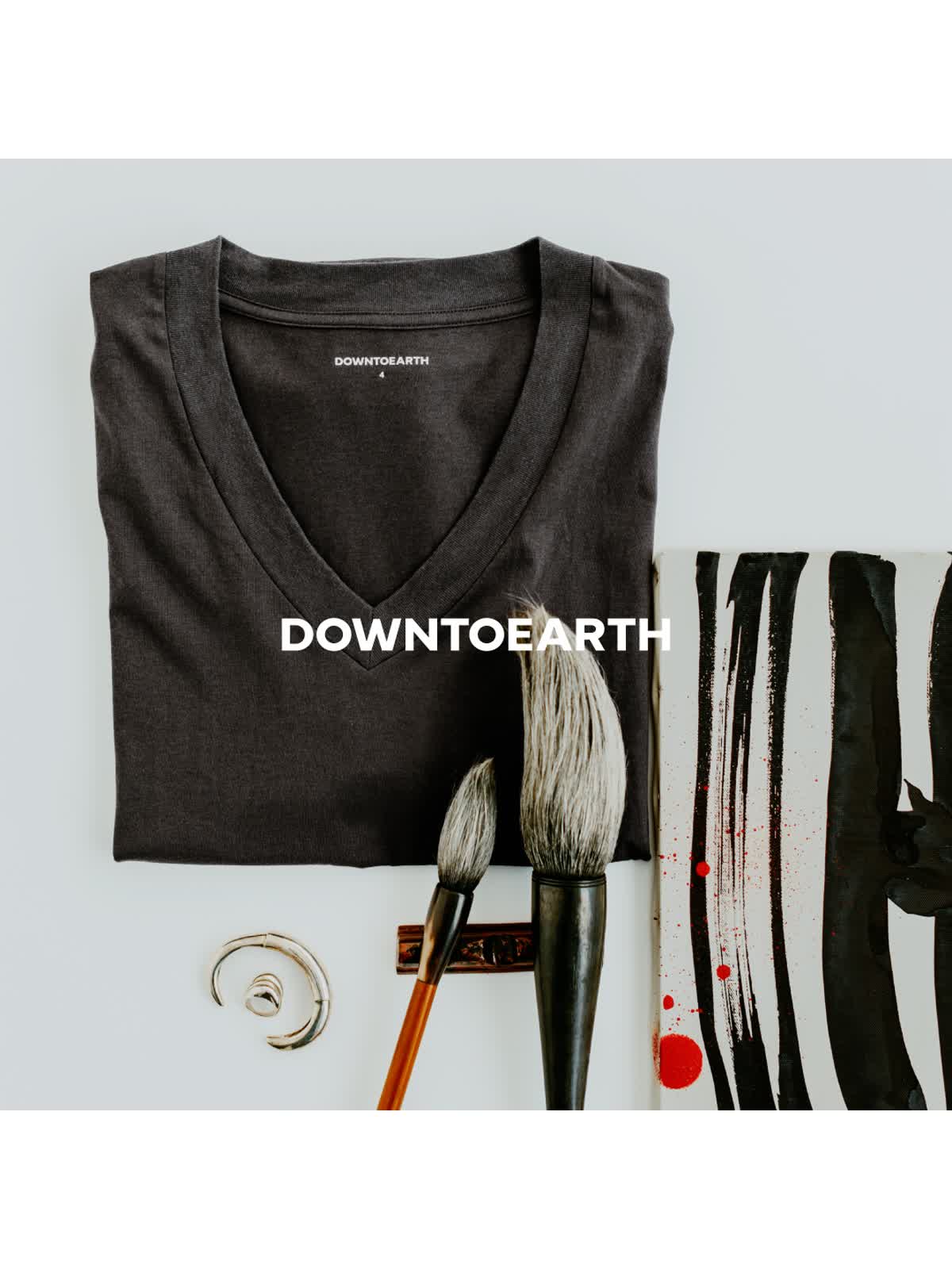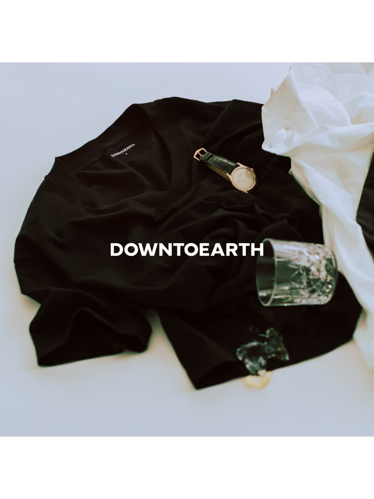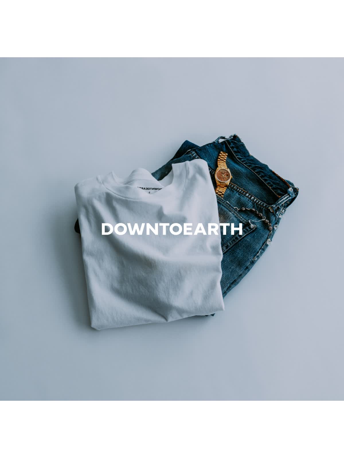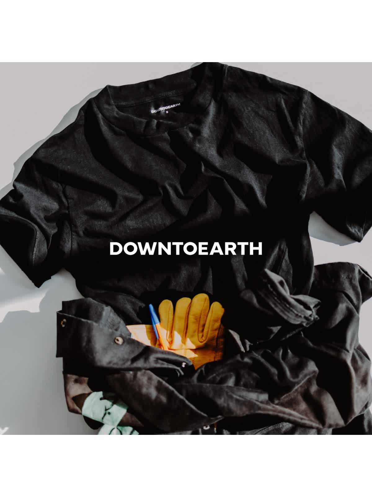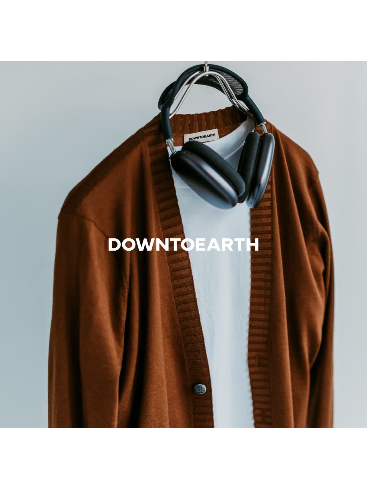 男性のワークシーン。お仕事の場⾯にフィットするように、ルーズすぎないシルエットと、深すぎないVネックのラインにこだわりながら、ウェアラブルなデザインを展開する〈DOWNTOEARTH(ダウンドゥアース)〉。