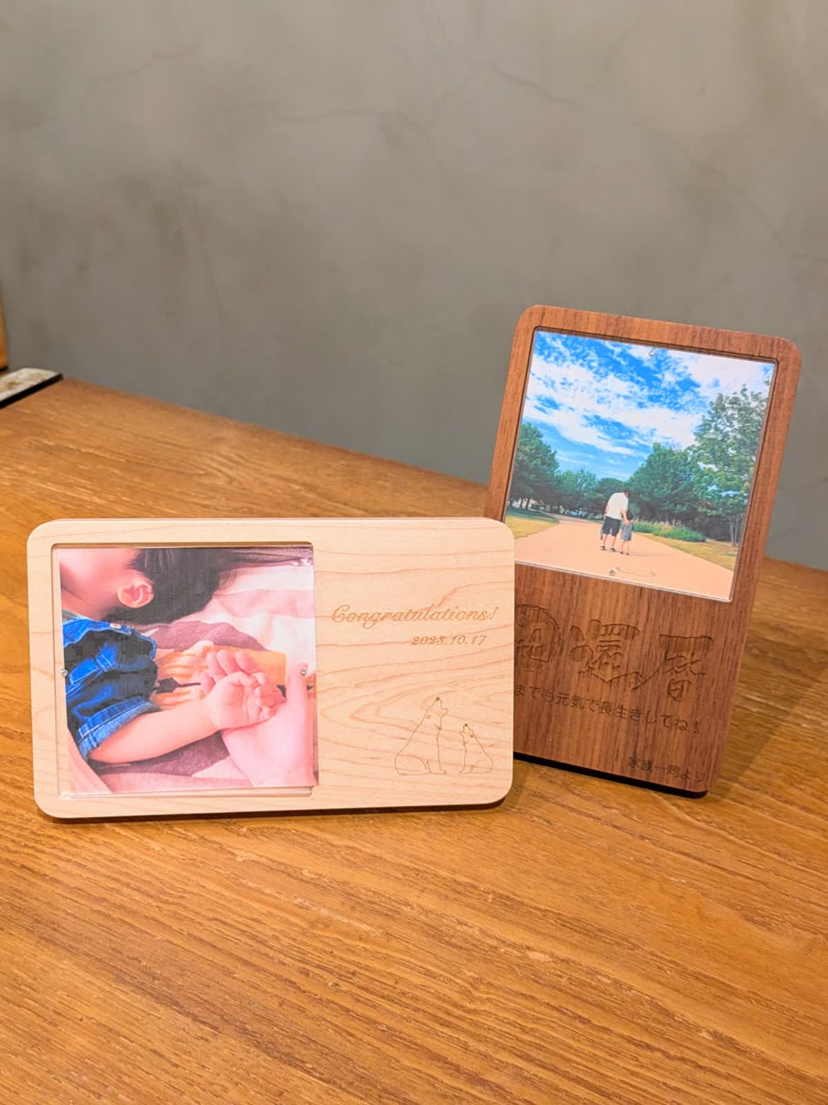 赤ちゃんの月齢・バースデーフォトを収納して、天然木の経年変化と共に思い出を楽しんでみてはいかがでしょうか。