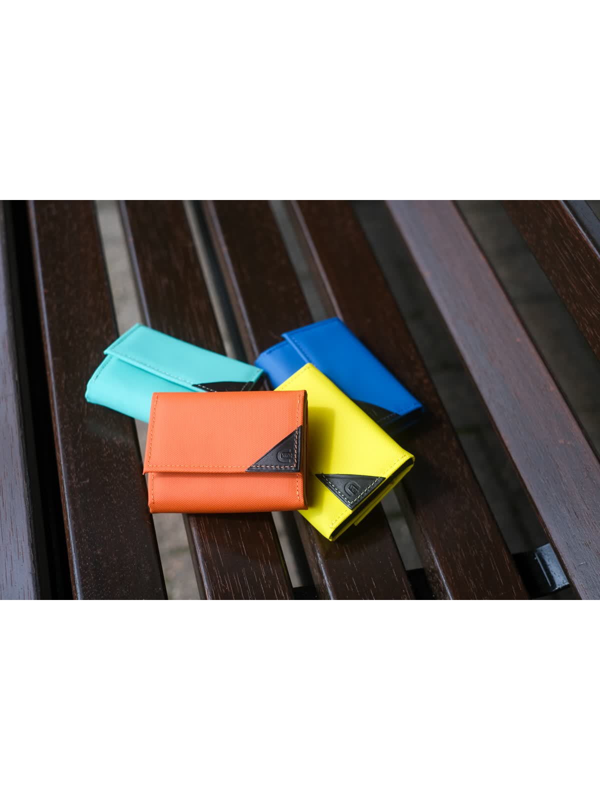 スポーティな素材を使用しておりますが、ベリベリ財布のようなチープなイメージにならないように、マジックテープでの開閉やテープでの縁巻処理をせずに革財布で用いる縫製方法で仕上げております