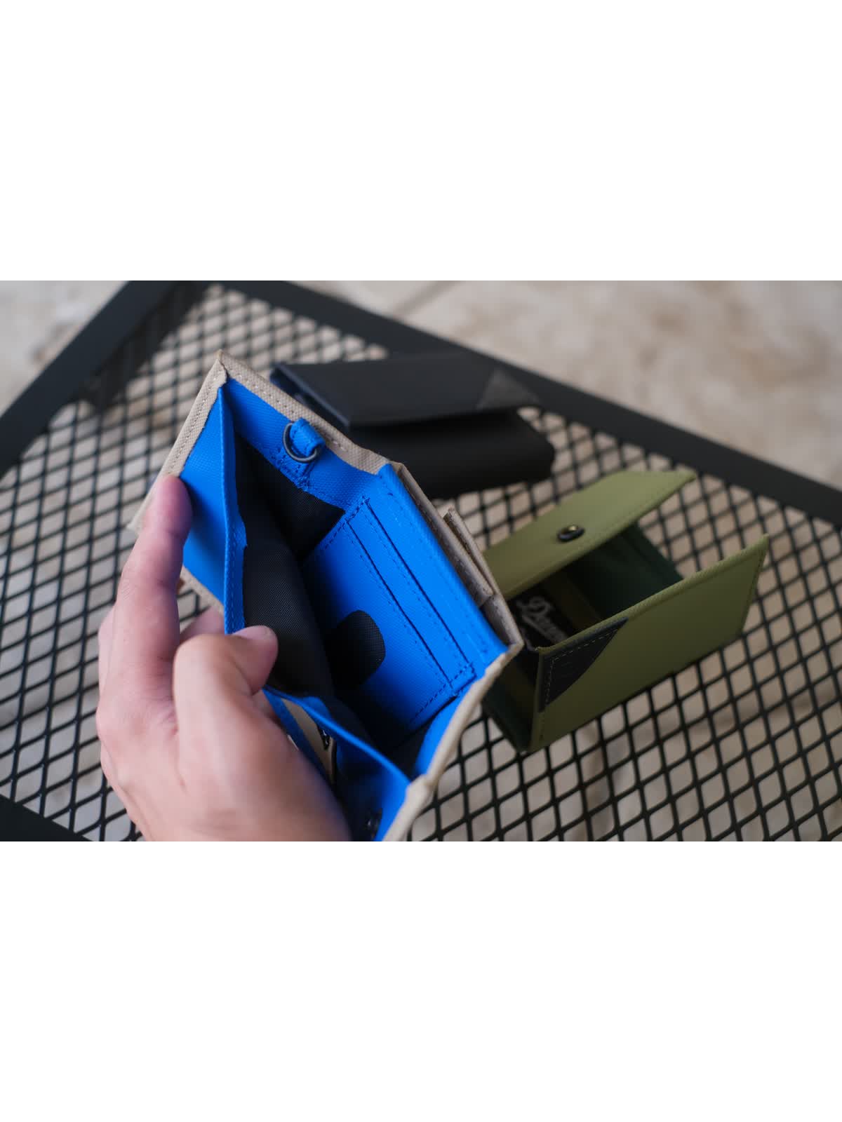 海や山、CAMPやフェスなどレジャーに活躍する小型財布です。