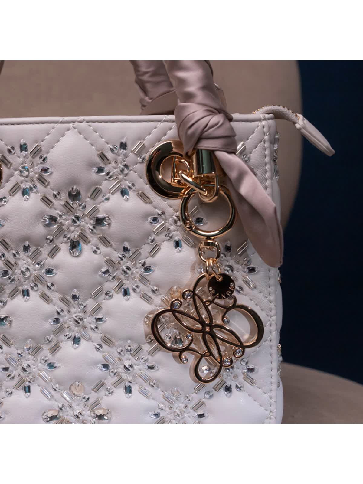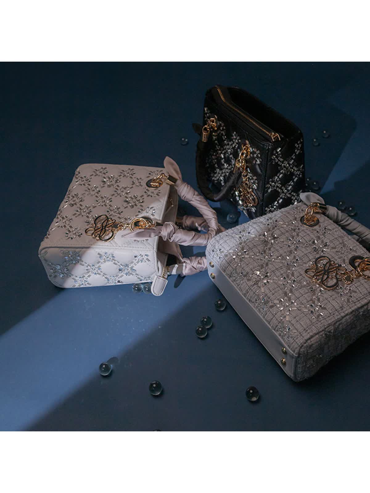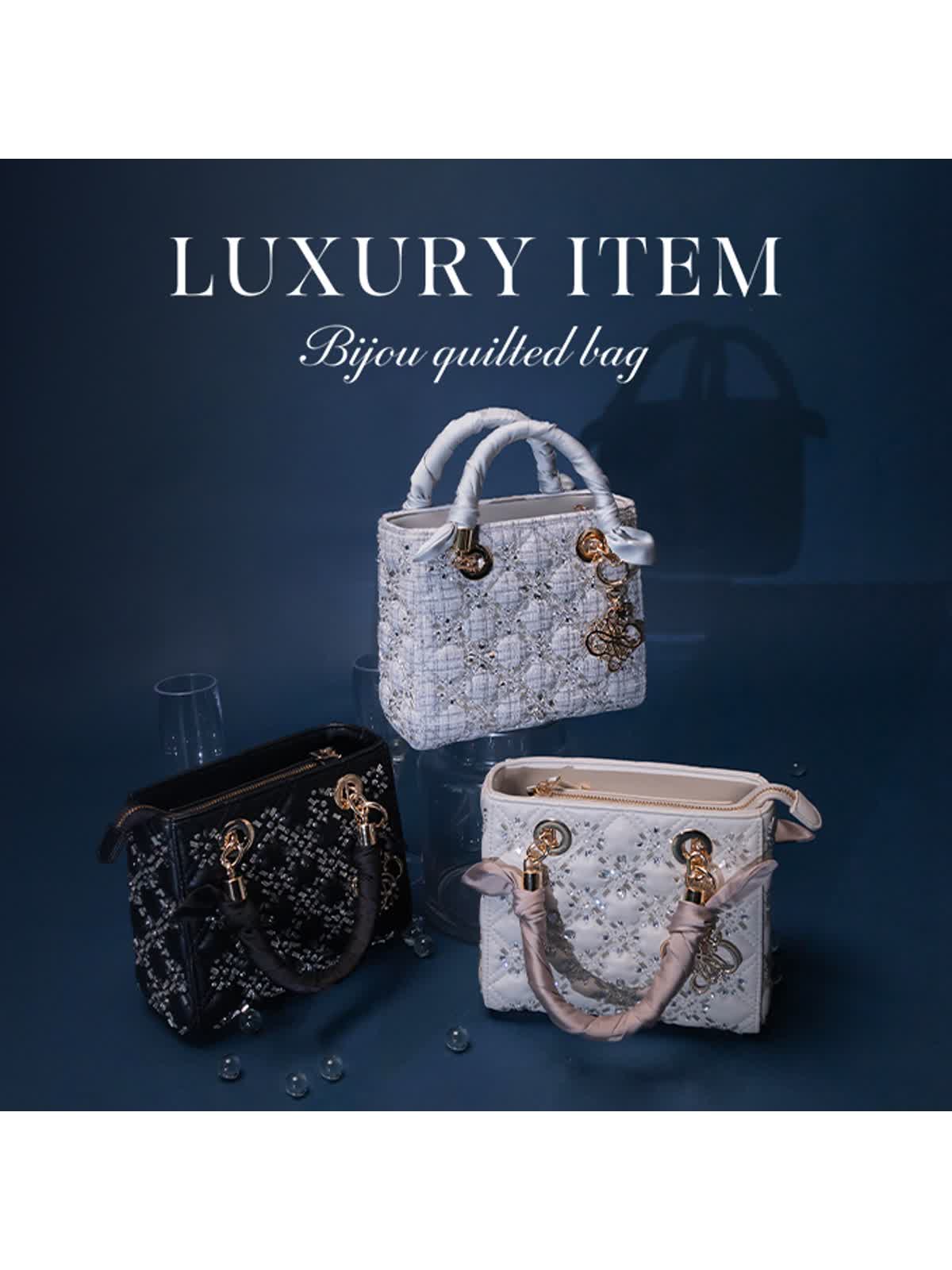 贅沢に繊細なビジューキルティングデザインを施したラグジュアリーハンドバッグ。