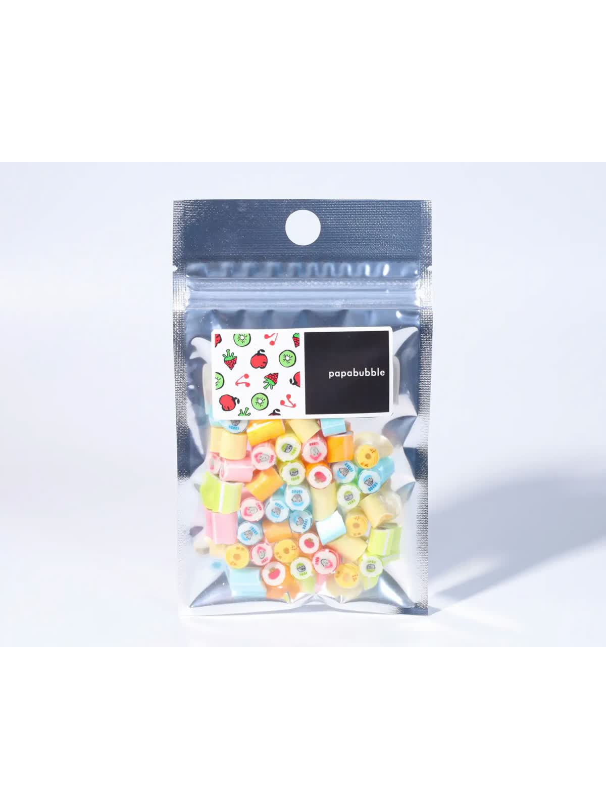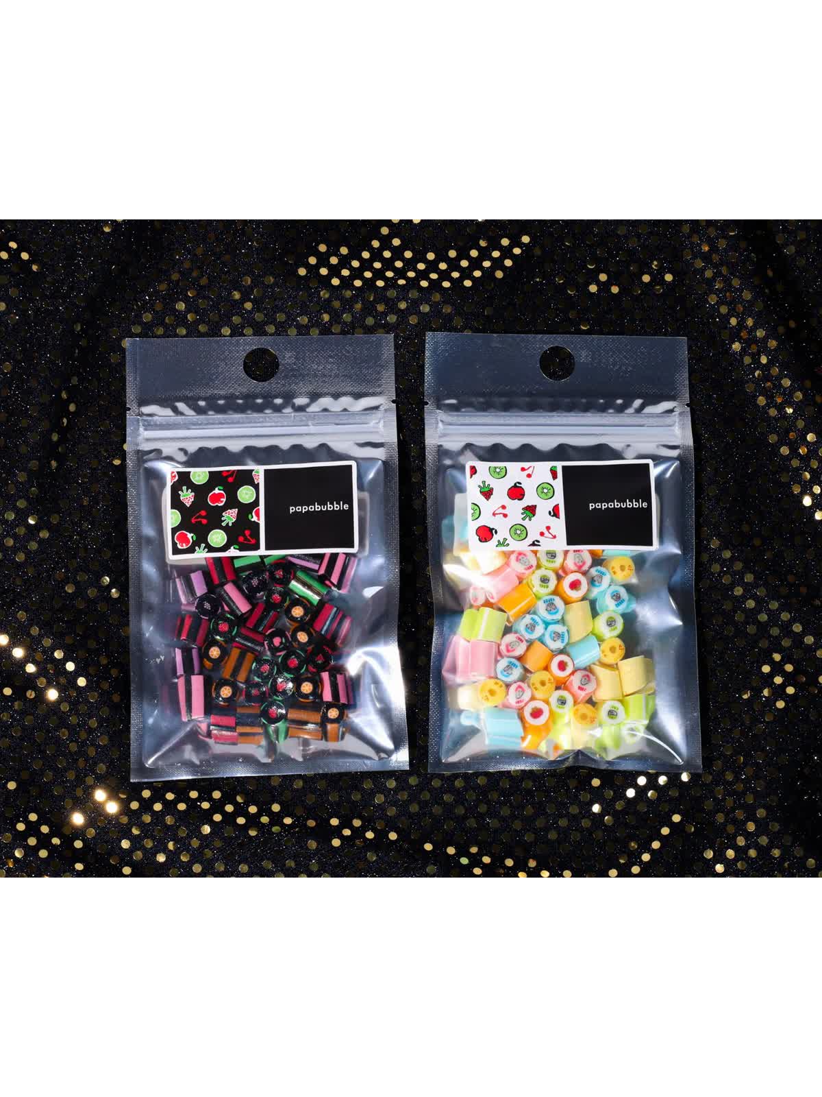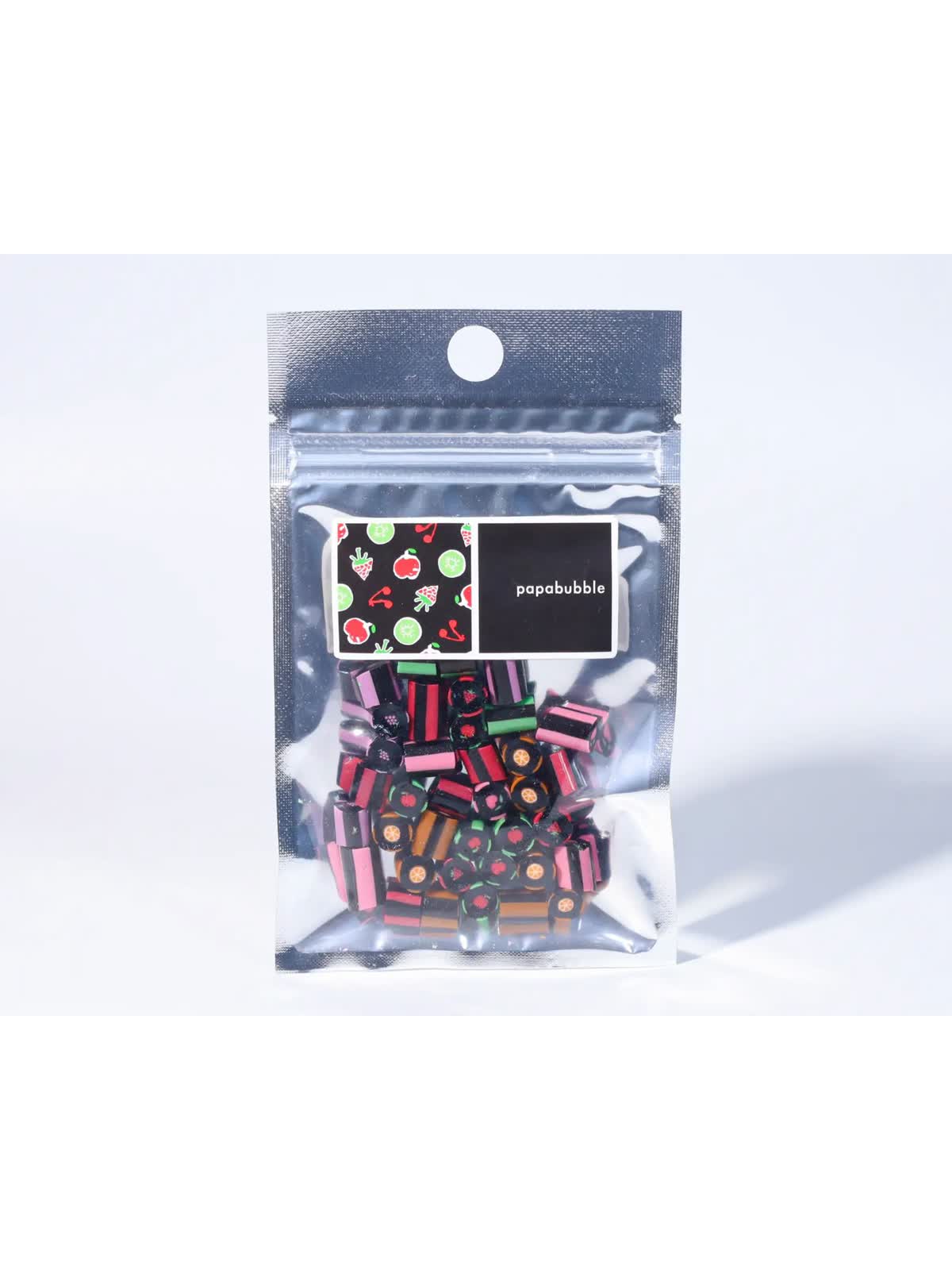 パパブブレ一番の人気商品である「フルーツミックス」の絵柄を、ブラックフライデーにちなんで”ブラック”に染めました。フレーバーは全て「フルーツ」×「ソーダ」のため、お子様にもおすすめのラインナップになっています。いつもと少し違う真っ黒なキャンディをお楽しみください。価格はそのままで、50gの量が入っているお得なキャンディです。