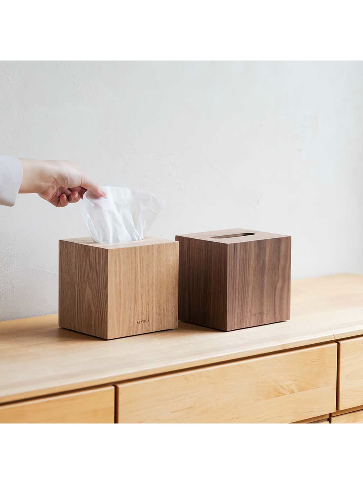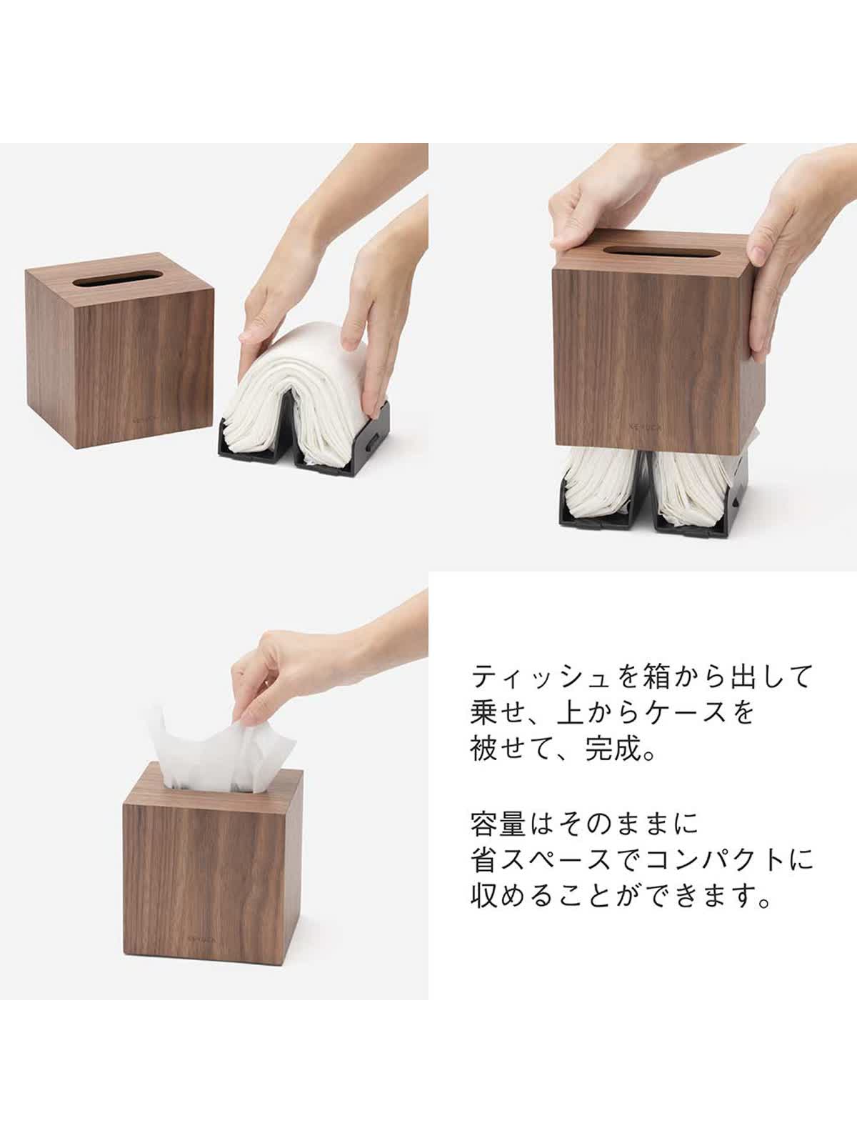 ティッシュペーパーを箱から出し、二つ折りにして乗せ、上から本体を被せるだけ。