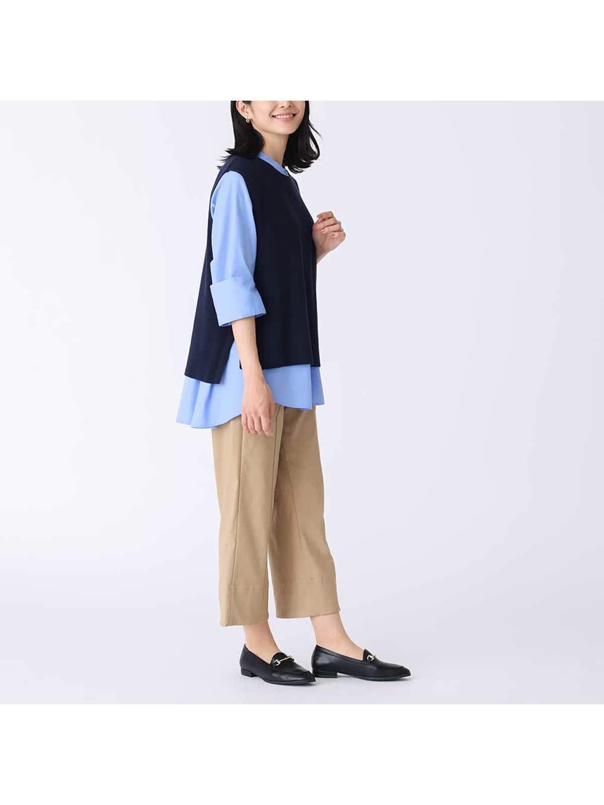 ・片畔編みで軽やかな表情のある、リネンタッチニットベスト