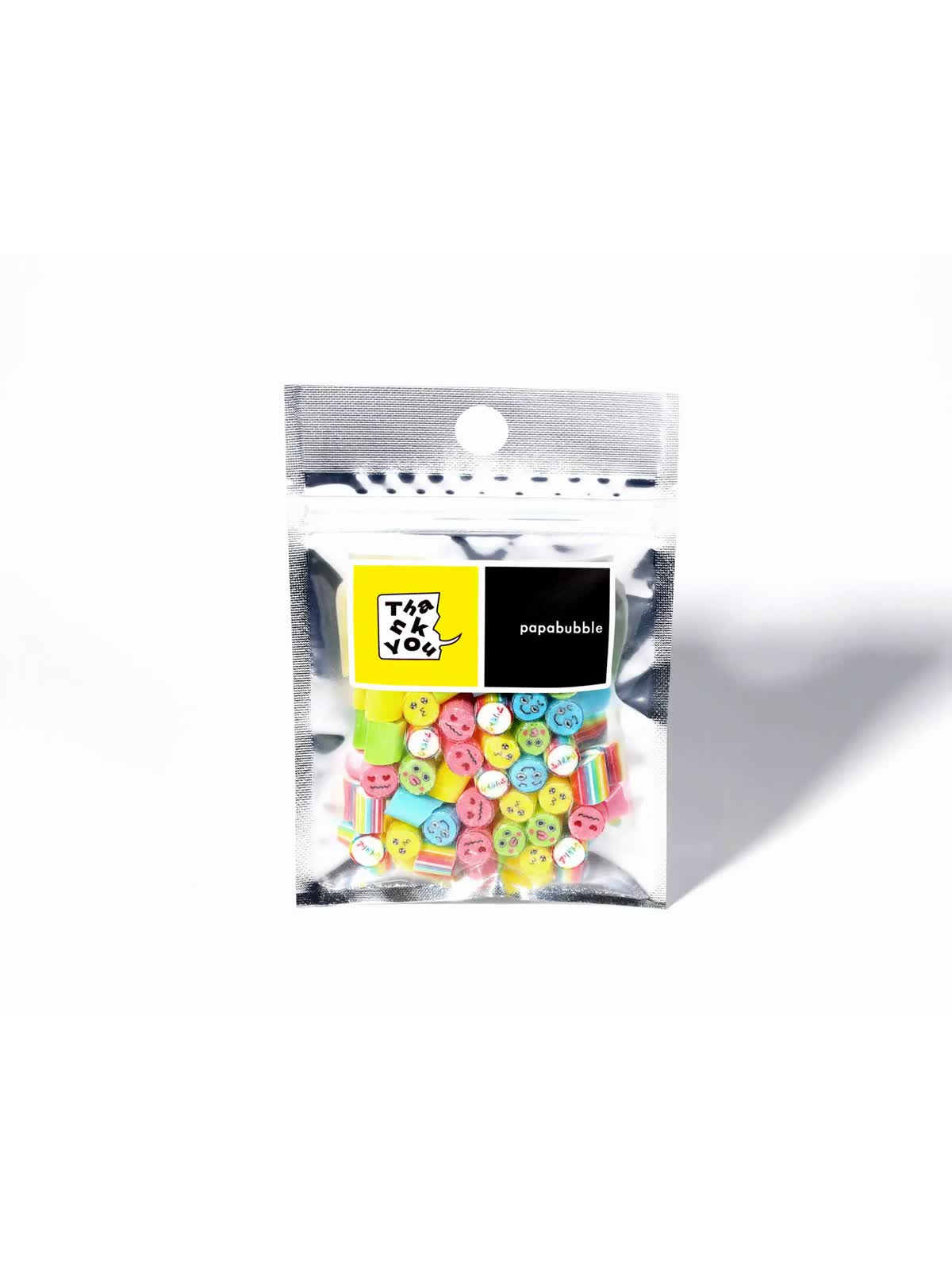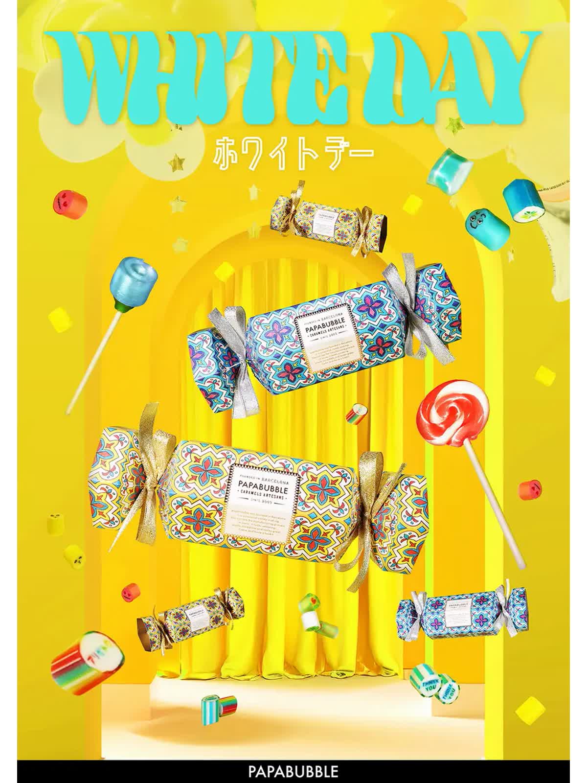 パパブブレのホワイトデーの定番、かおミックス。今年は可愛い4つのお顔と、カラフルな「ありがとう」の文字が入って登場です。フレーバーは老若男女に人気のフルーツフレーバーを贅沢仕様で仕上げました。職場や学校など、さまざまなシーンで気軽に贈れるホワイトデー限定のキャンディです。