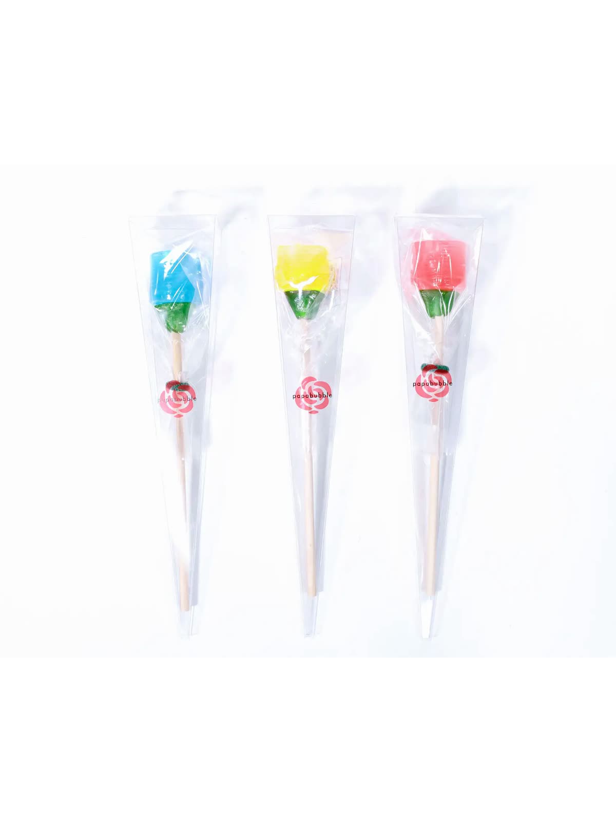 本物のバラを贈るのは少し恥ずかしい…そんな方におすすめなバラ型のロリポップキャンディ。爽やかなブルー、春らしいイエロー、可愛らしいピンクの3色をご用意しました。大切な方への感謝の気持ちを、一輪のフラワーロリポップで伝えてみてください。