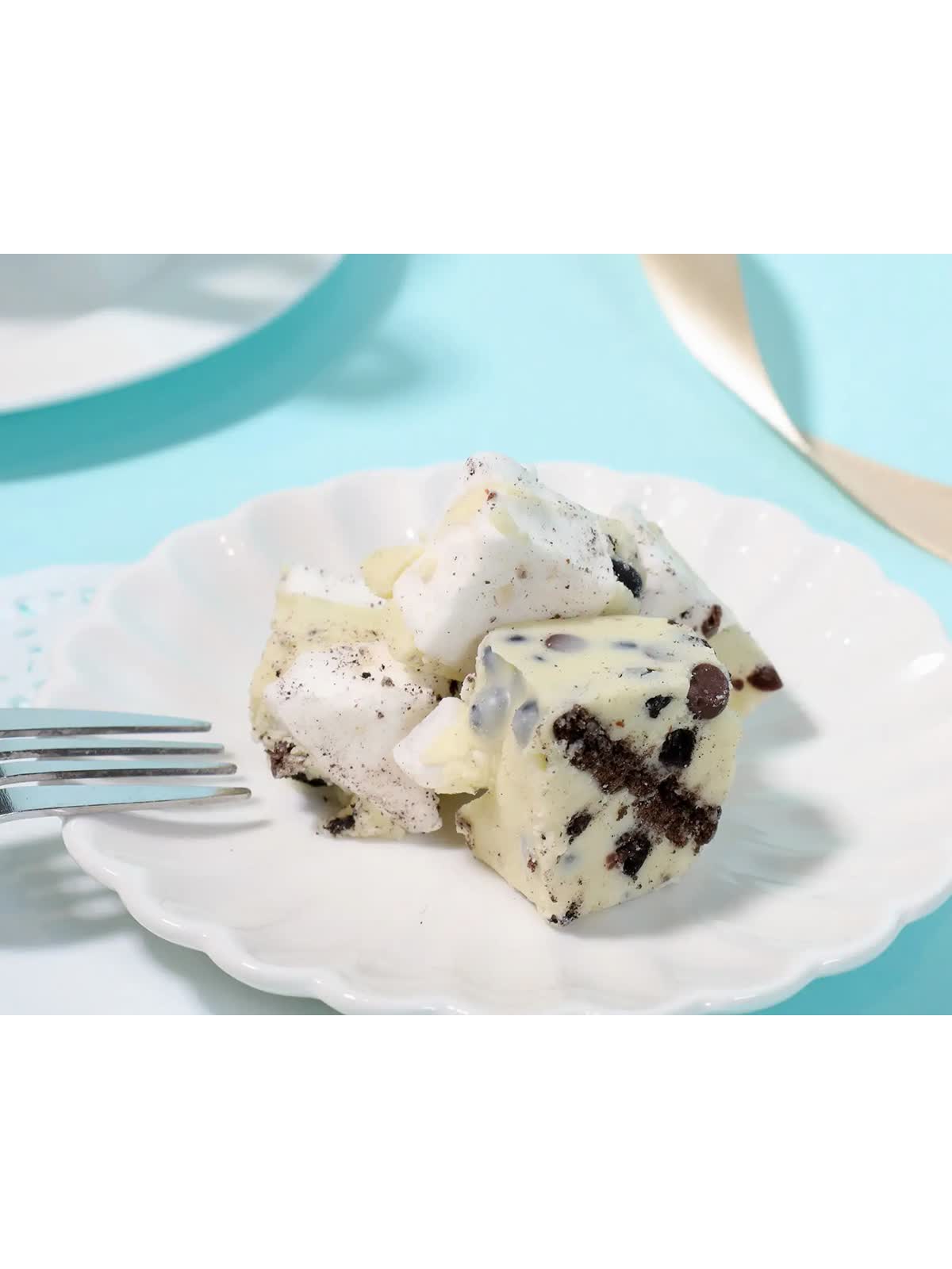 ホワイトデー限定で、2種類のロッキーロードが登場です。お返しの定番であるクッキーから連想した「クッキー&クリームロッキーロード」は、ほんのりバニラなチョコレートに、ミルクマシュマロとココアビスケットをたっぷり混ぜ込んだミルキーな仕上がりです。「トロピカルロッキーロード」は、果汁入りのパイン&パッションマンゴーマシュマロを、酸味のきいたマンゴーチョコレートに加えました。隠し味にオレンジピールを少し入れています。