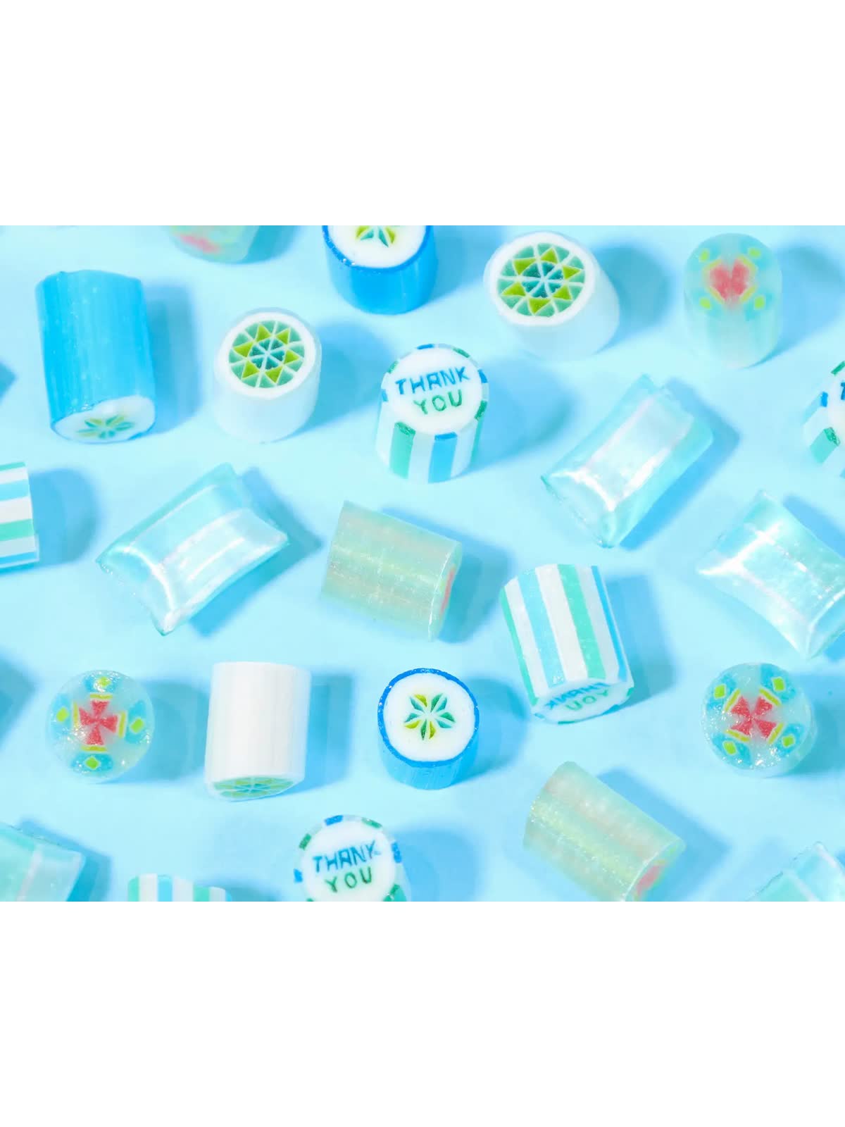 「ピーチヨーグルト」「フルーツティー」など、女性人気の高いフレーバーで仕上げた、ステンドグラス風デザインのキャンディです。「THANK YOU」の文字も入っているので、普段は言えない感謝の言葉をキャンディに託して贈ることもできます。バレンタインのお返しギフトにもおすすめです。