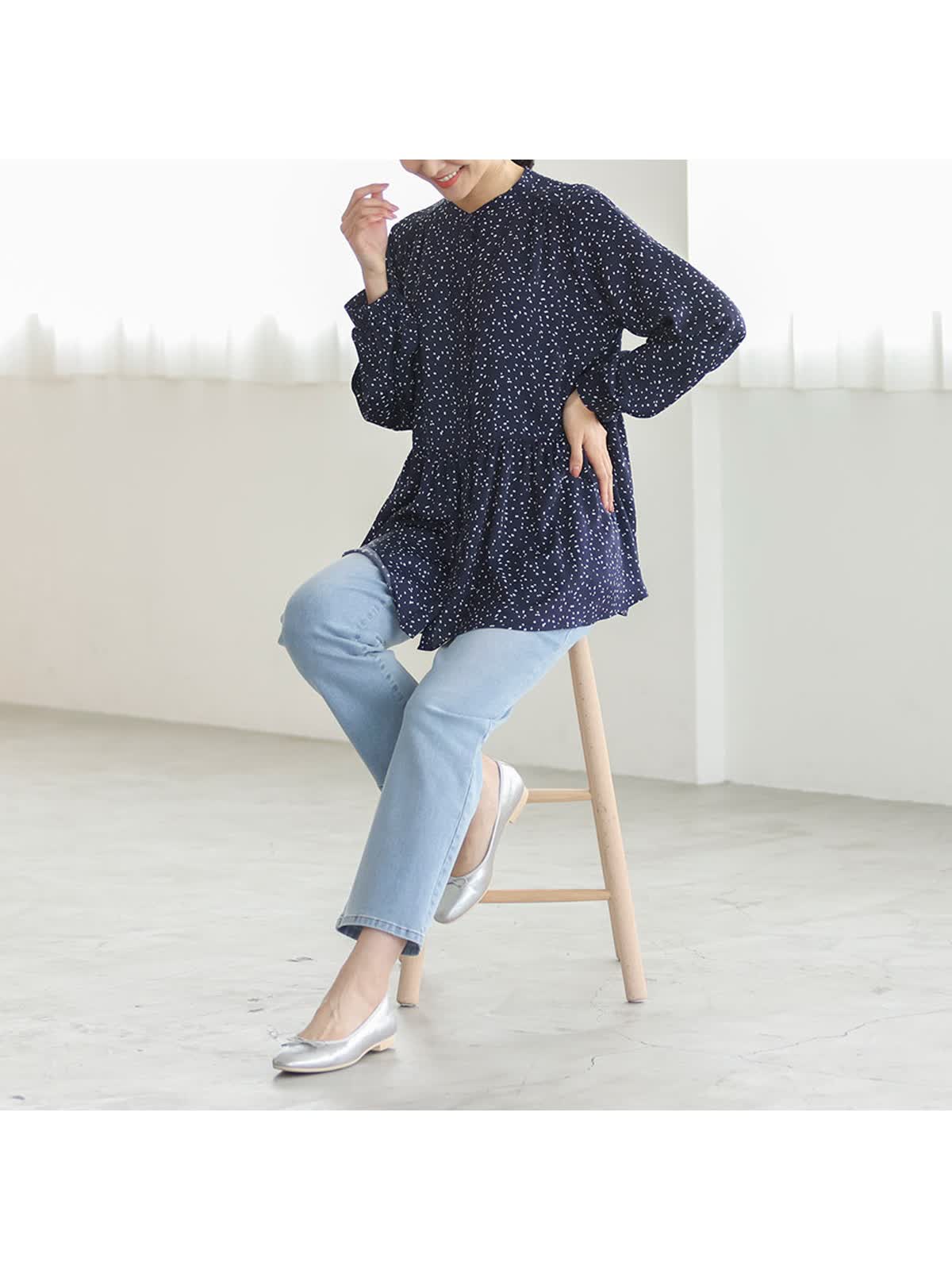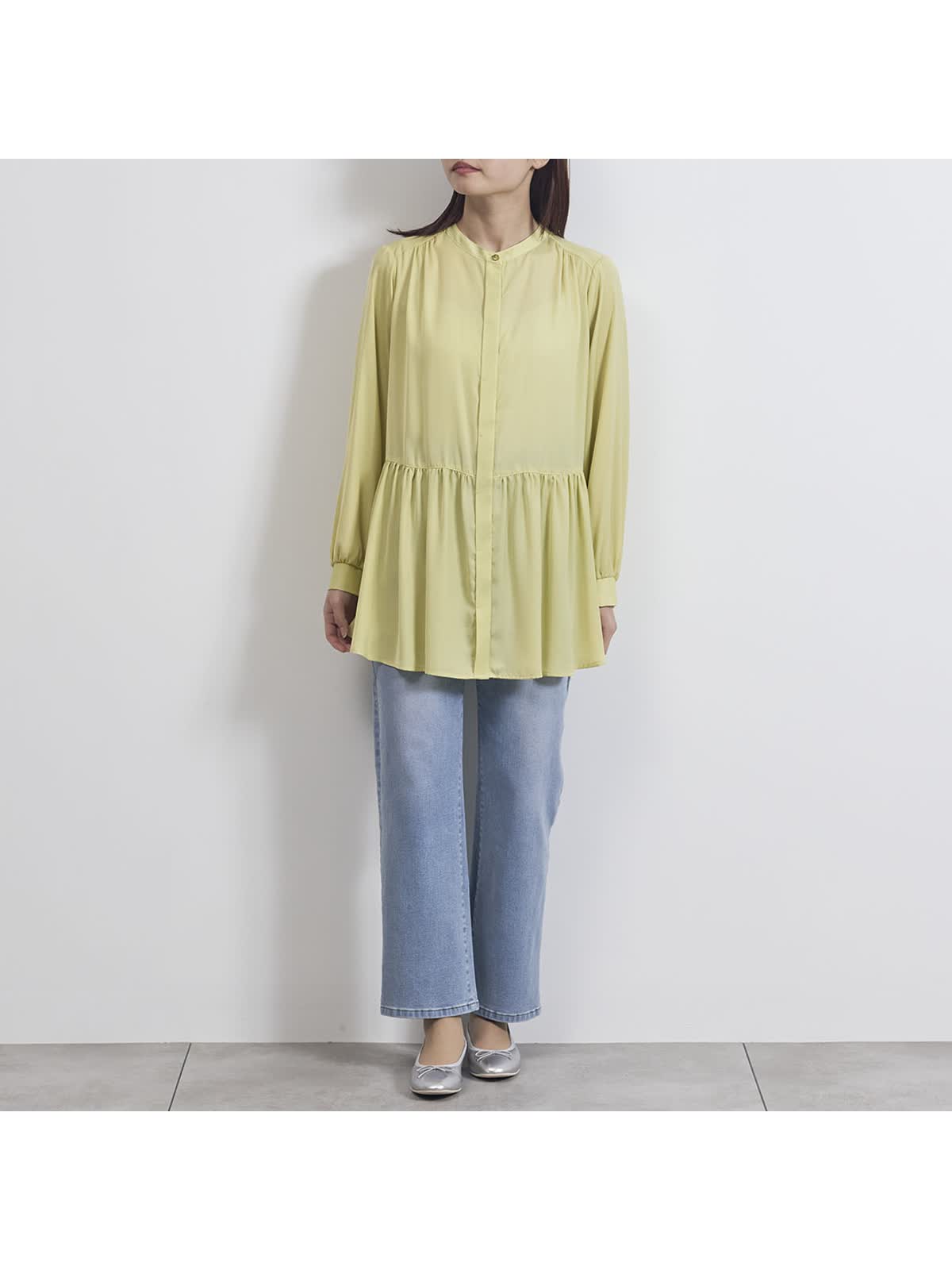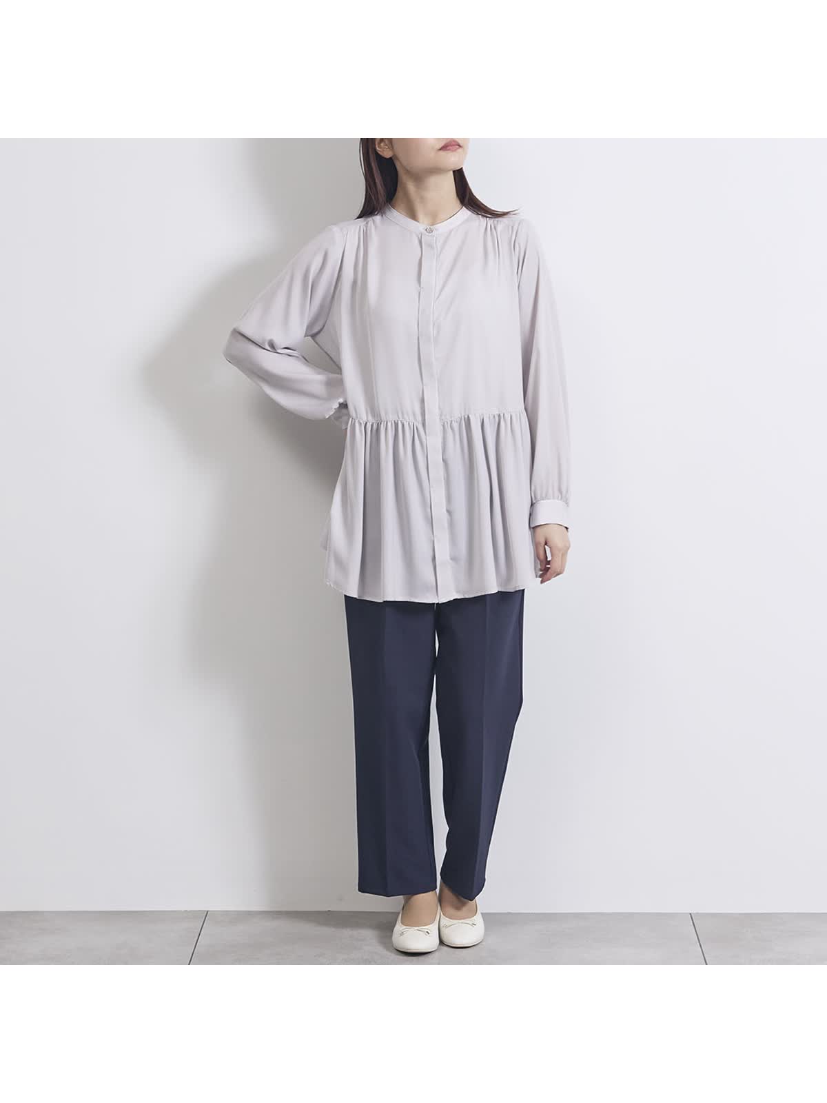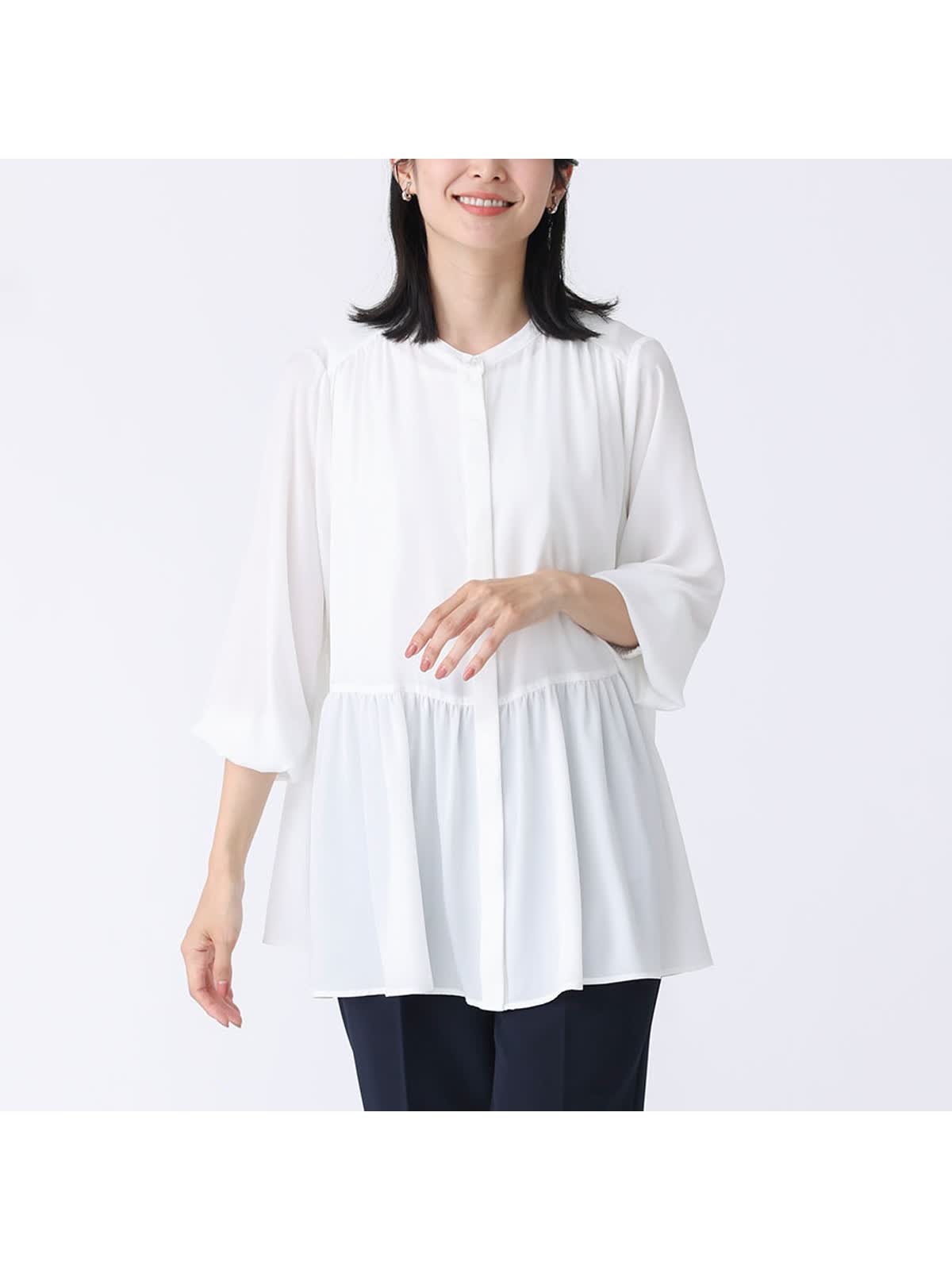 👗たっぷりギャザーが上品見え!ペプラムシャツブラウス👗