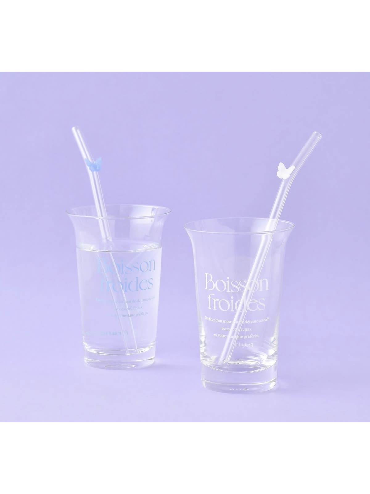 蝶のモチーフがかわいい、ストロー付きのガラスタンブラーが新登場🦋
