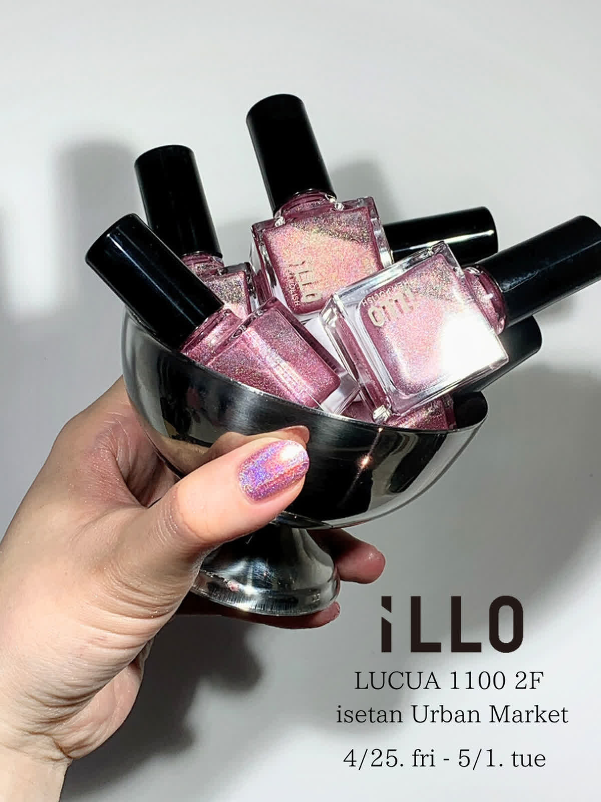SNSで話題の大人気ネイルポリッシュブランド『iLLO』アイロが大阪でPOP UPを開催!春の新色の先行販売の他、より美しくより素早くをコンセプトに新しいアイテムのトップコートを発売いたします。実際に手に取ってラメの輝きや不思議なカラーをお試しください。ネイルポリッシュにつけられた色の名前もより魅力的でiLLOの独特な世界観を感じていただけます。繊細さと大胆なカラー、他にはない30色以上のポリッシュをお楽しみください。