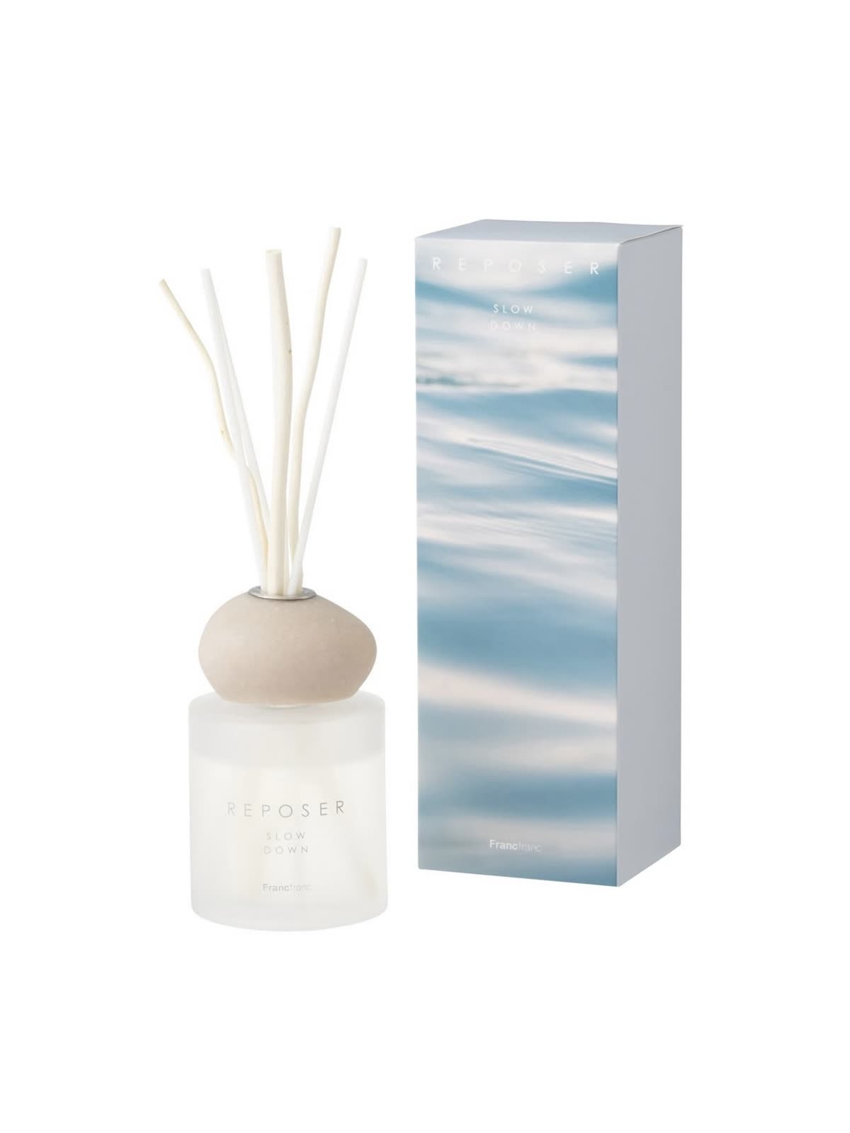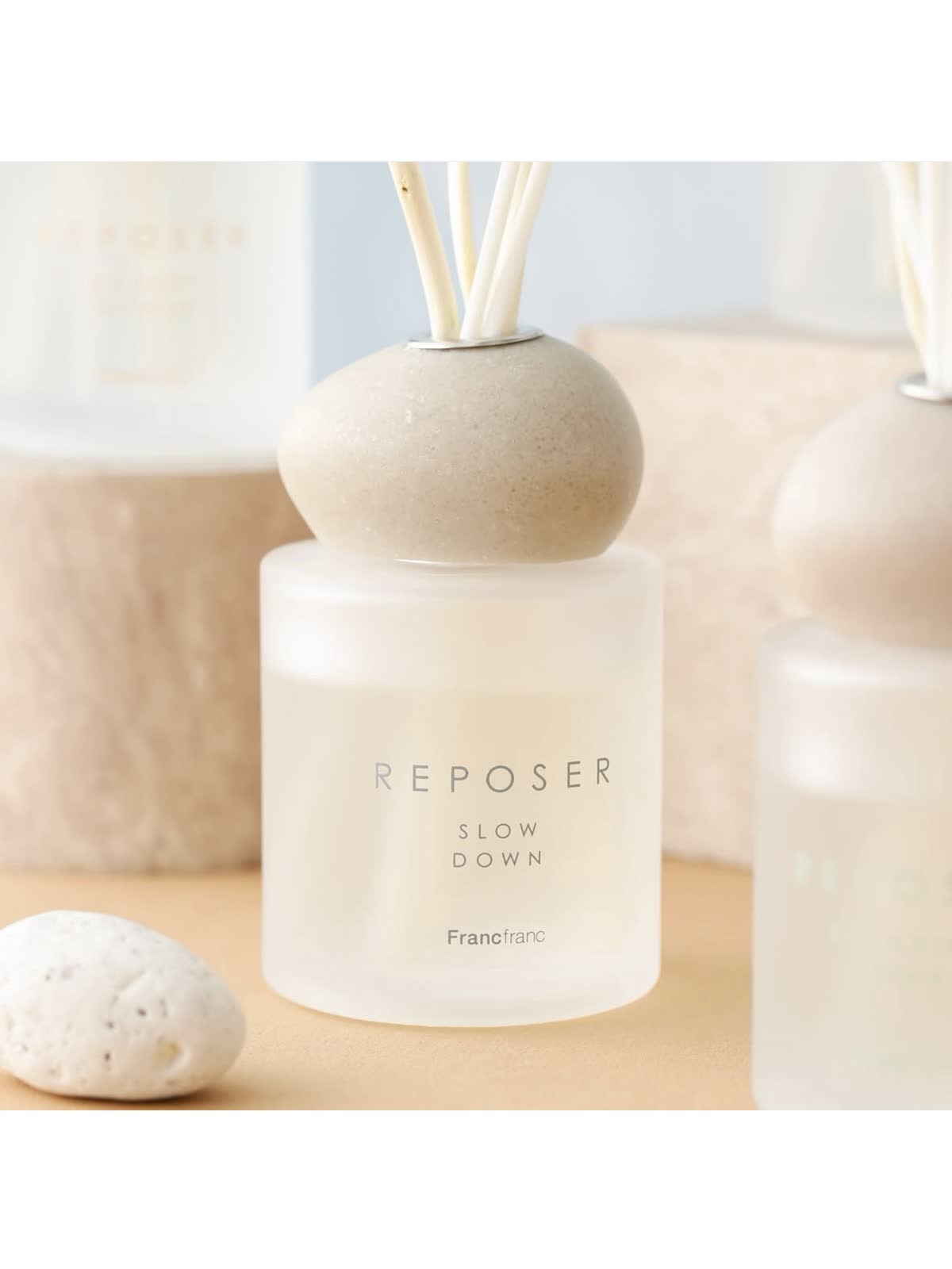 自然の石を思わせるような丸みのあるモチーフや枝を模したリード、柔らかな白のフロストのボトルなどナチュラルで温かみのあるデザインが、リラックスタイムにぴったり☺️