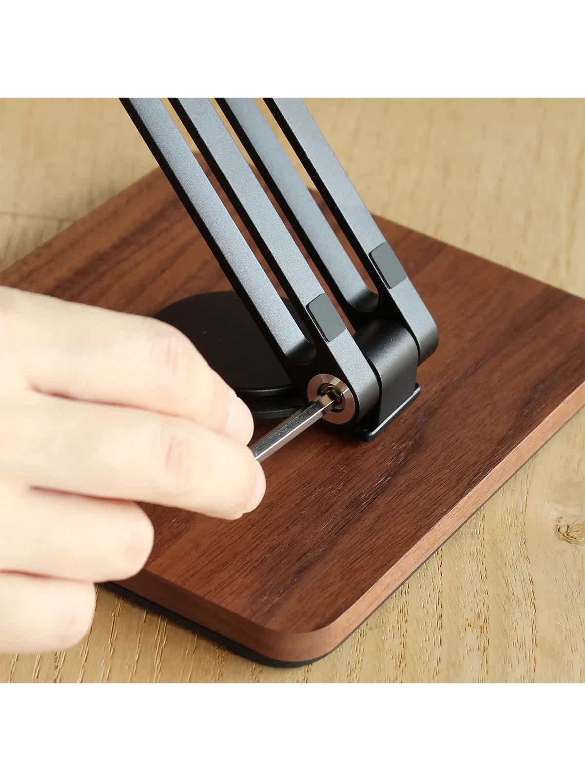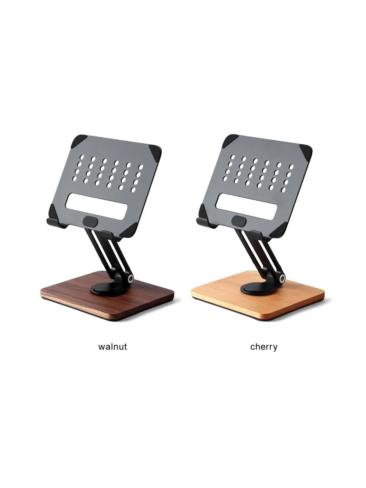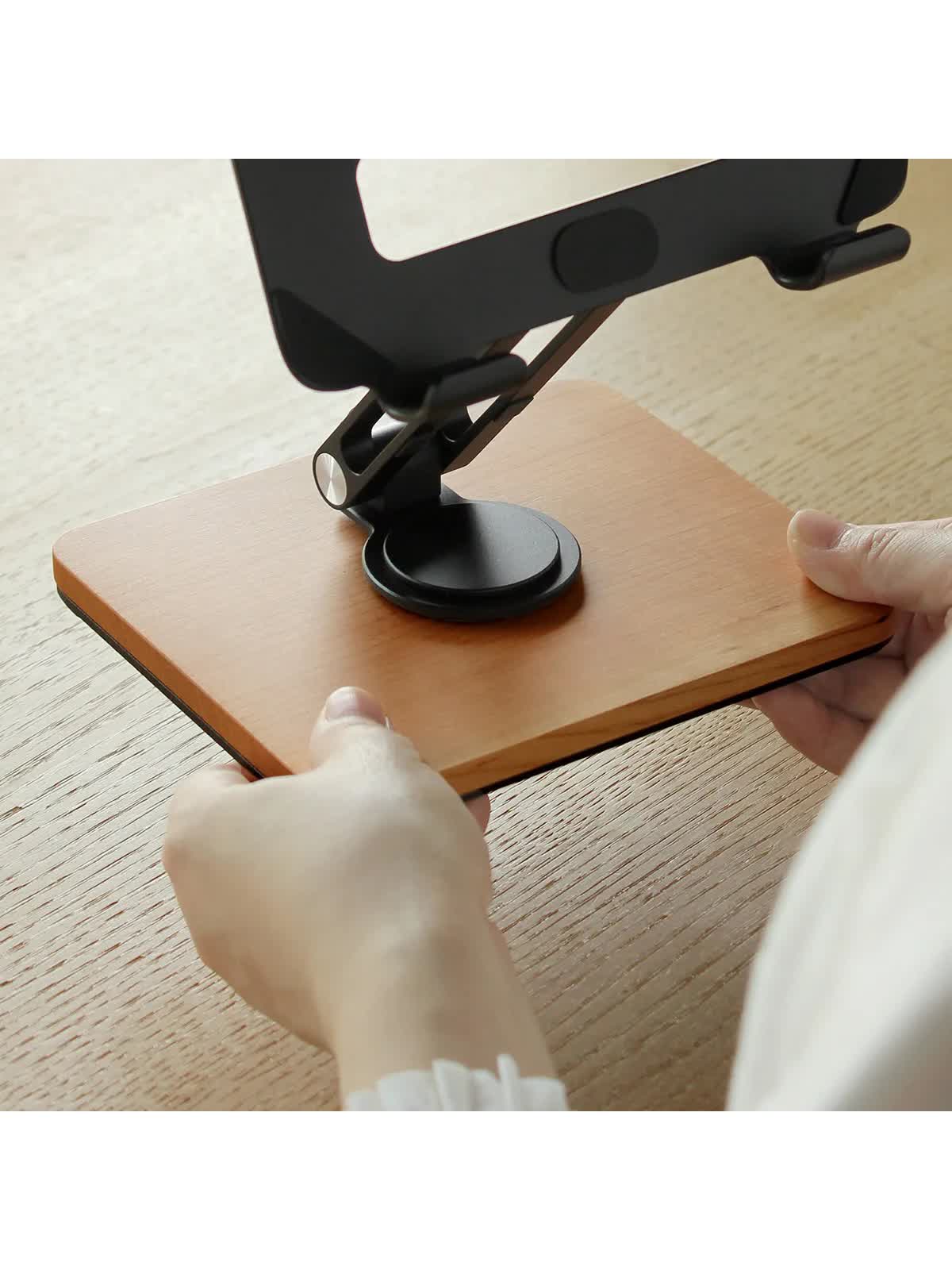 用途に合わせて高さや角度調整ができる木製タブレットスタンド。