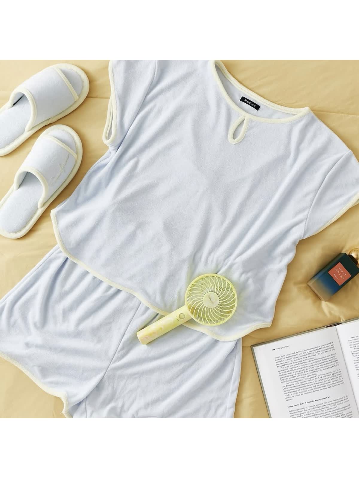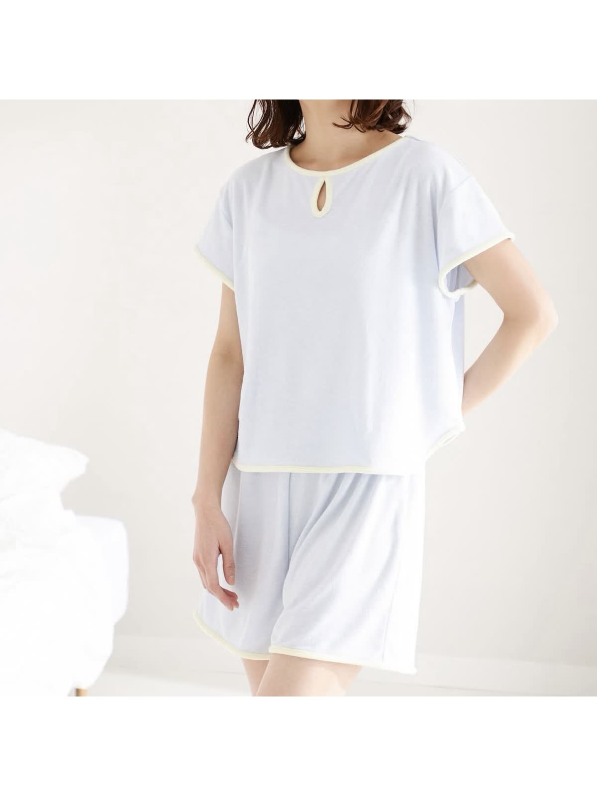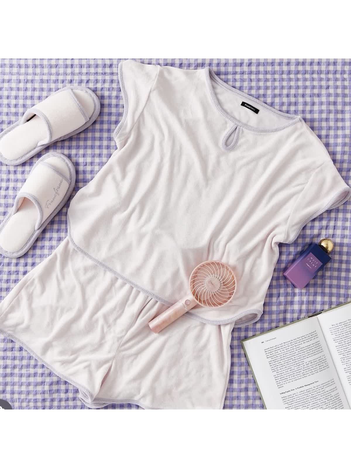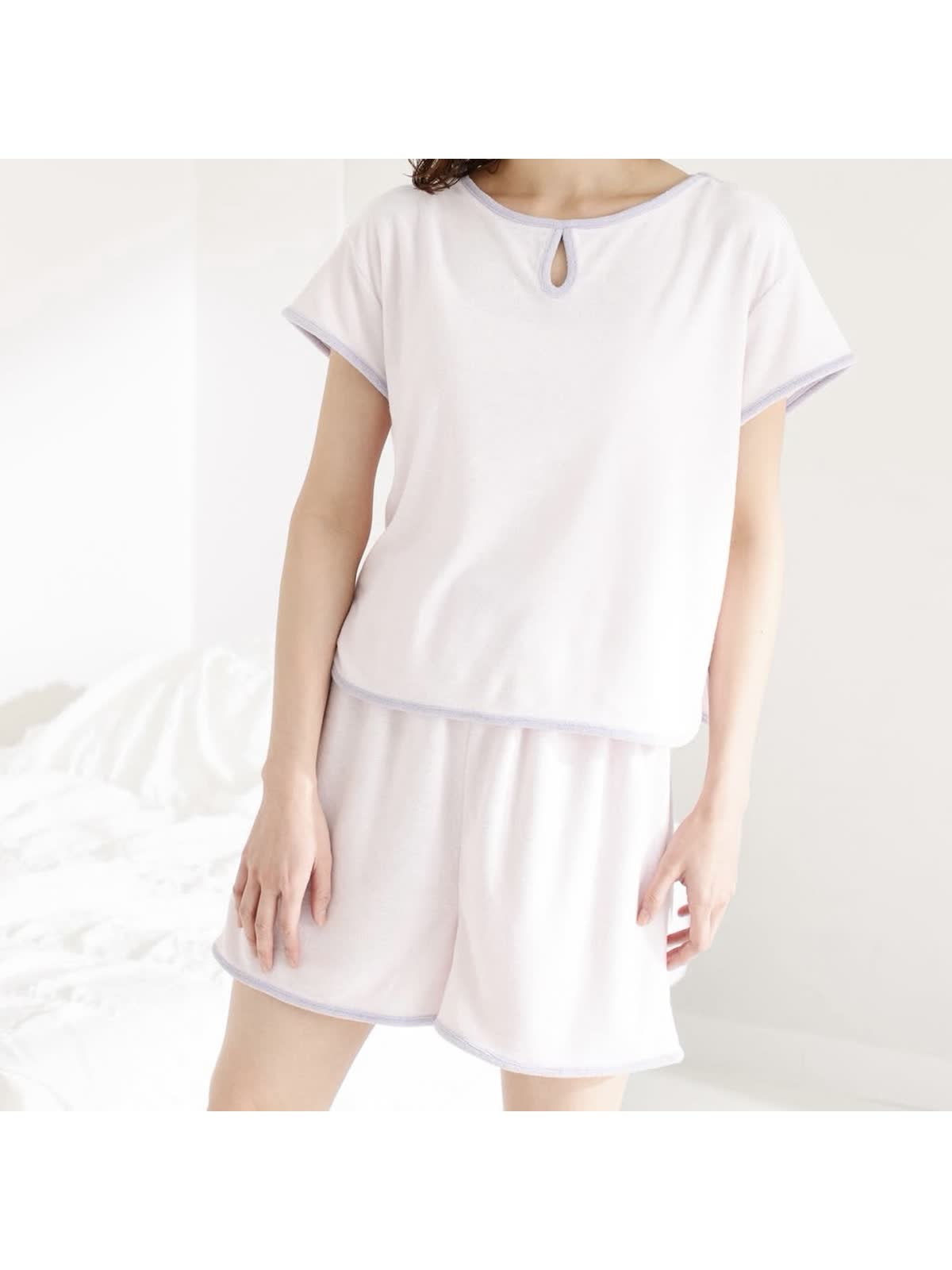 レーヨン配合のとろみのある接触冷感パイル生地を使用している、暑い夏を心地よく過ごせる新作ルームウェア✨️