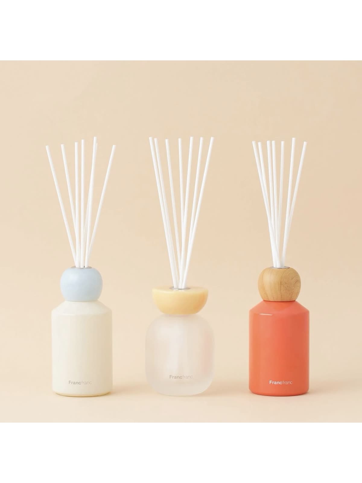 インテリアオブジェとしての美しさに着目し、香りだけでなくボトルカラーや形なども組み合わせることができます。