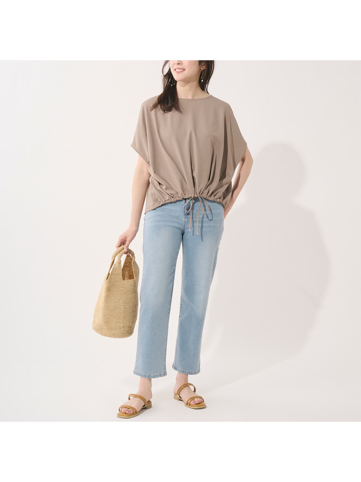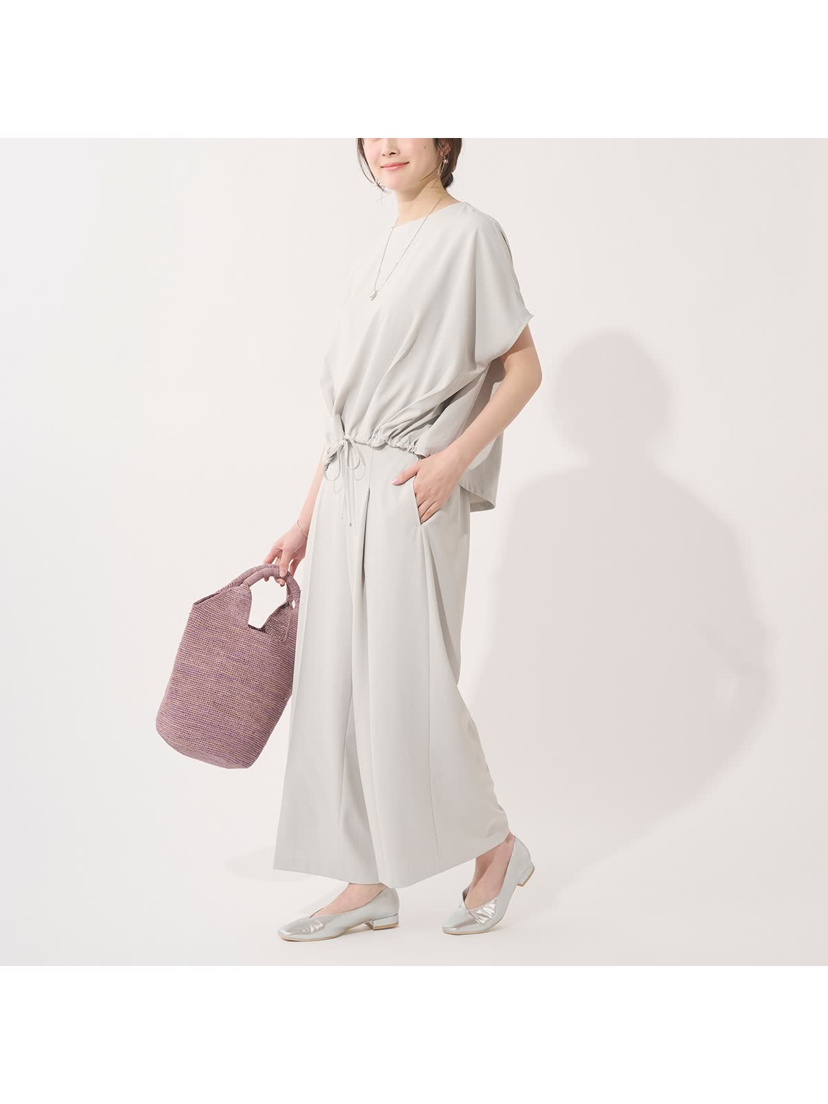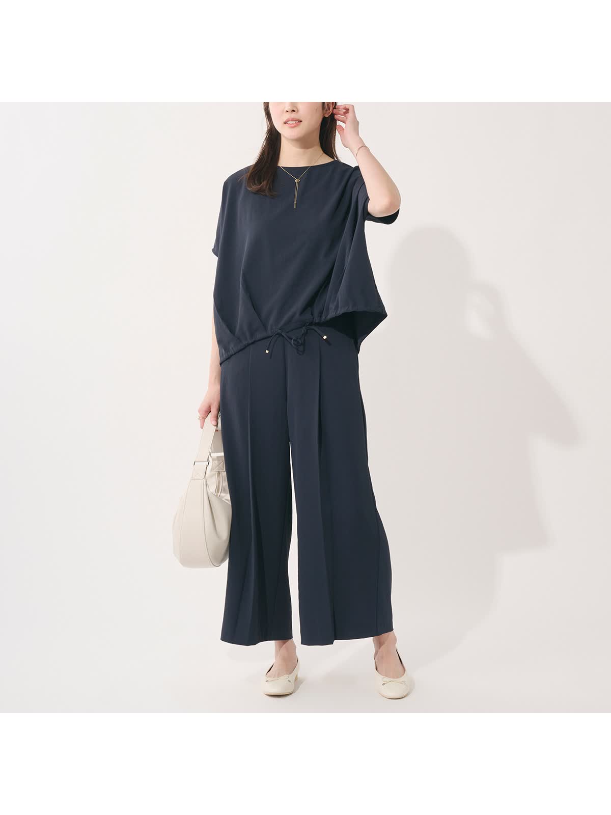 ・裾にはギャザーを施し、紐でシルエットチェンジも楽しめる