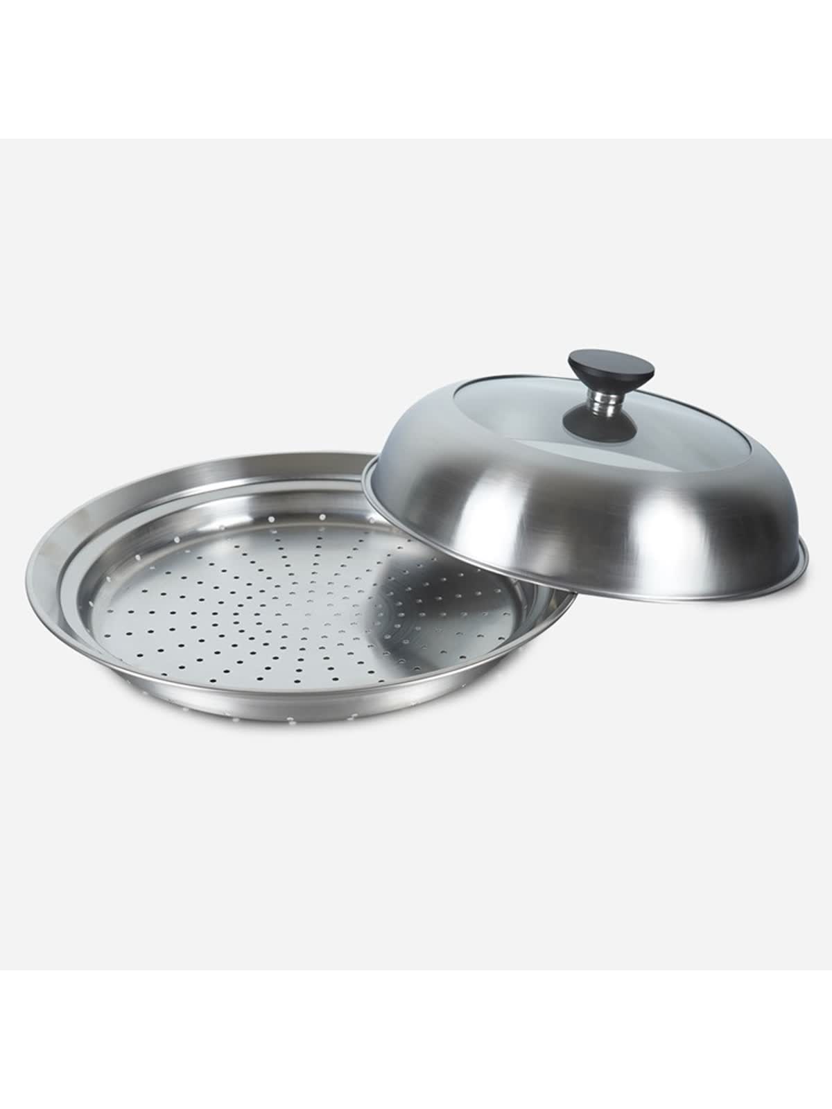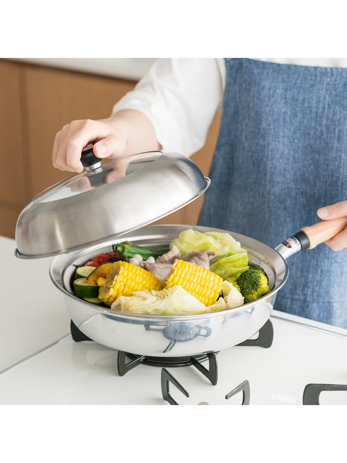 お手持ちのフライパン・鍋にのせるだけで蒸し器になる、ステンレス蒸し器です。