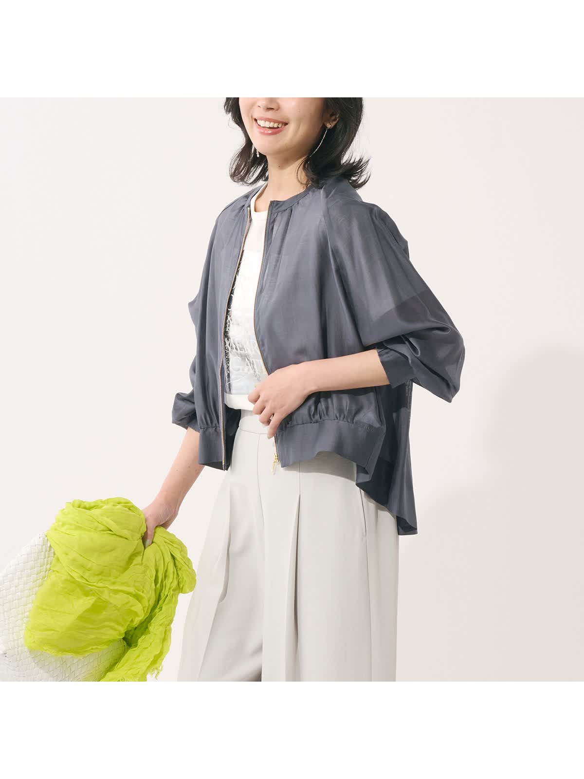 夏は羽織りとして、秋口にはジップを閉じてブラウス感覚で使えるのでロングシーズン活躍しそうです。