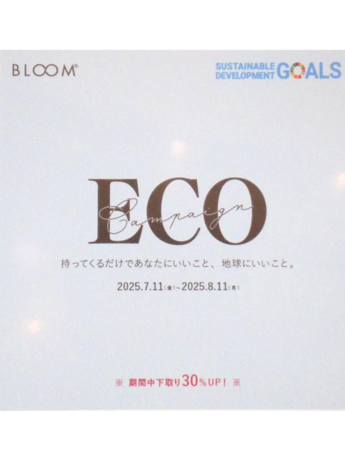 リユースの日に伴い只今、7/11〜8/11までの期間限定でBLOOMの日キャンペーンを開催しております。