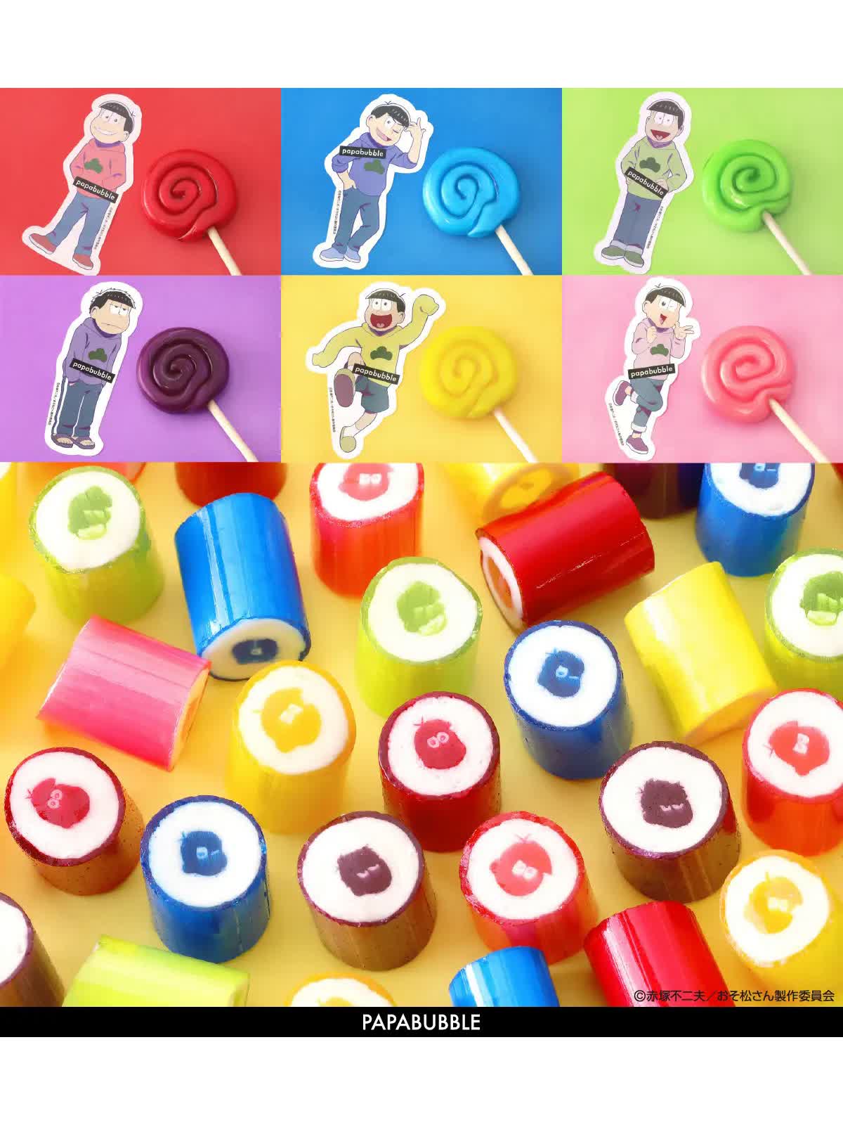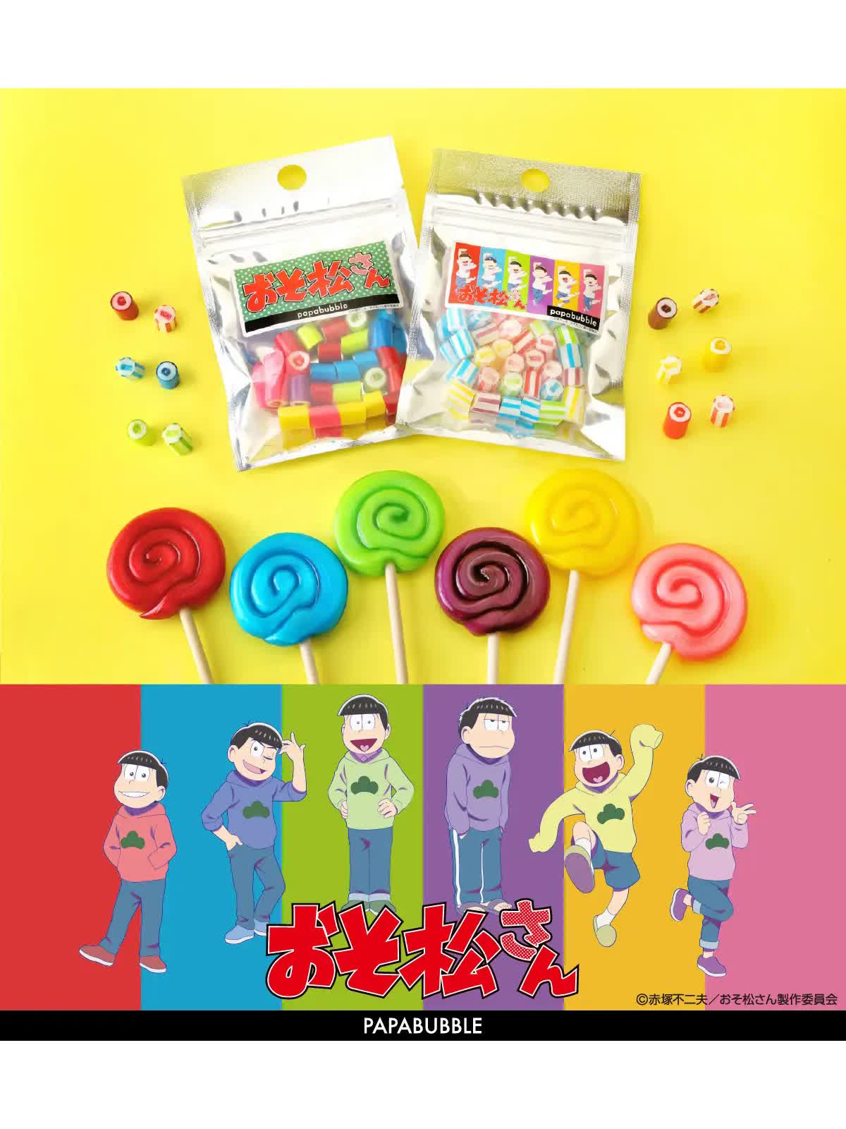 Craft Candy Theater「PAPABUBBLE/パパブブレ」は、TVアニメ『おそ松さん』とコラボレーションしたキャンディのシリーズを、7月28日(月)よりパパブブレ公式サイト(https://papabubble.co.jp/collections/osomatsusan)、8月1日(金)より全国店舗にて数量限定で発売いたします。