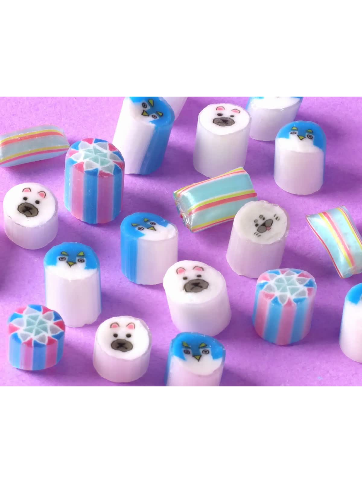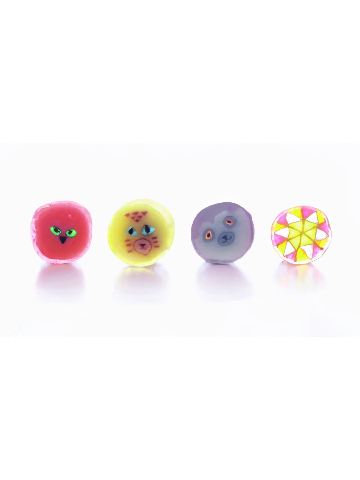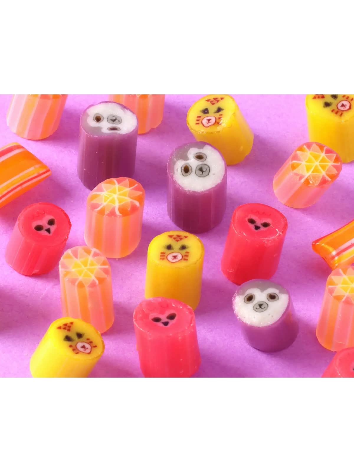 キャンディは、光に透かすと動物の目がキラリと光る、遊び心あふれる仕掛け付き。まるで暗闇で目を光らせる本物の夜行性動物のような、不思議でワクワクするキャンディです。