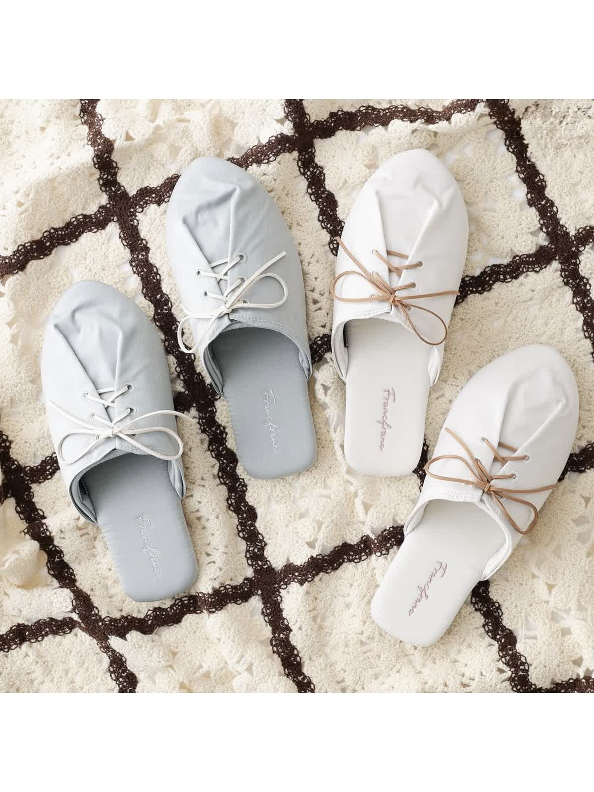 ・サテンレースアップルームシューズ