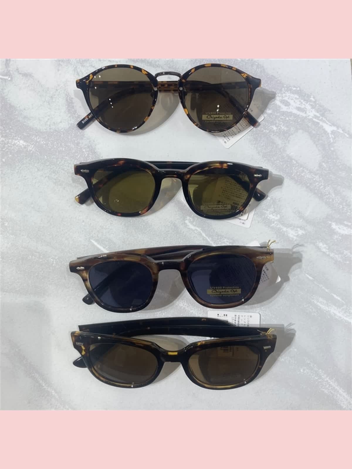 人気のブルーレンズや、定番のべっこう風フレーム、
