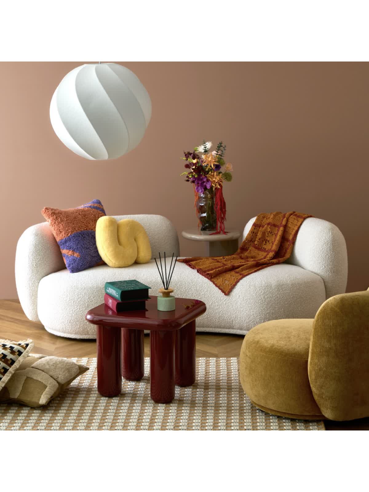 リビングルームのメインとなるのは、人気のブークレ素材のころんとした丸みが愛らしいソファ。空間をおしゃれに彩るデザインです🛋️