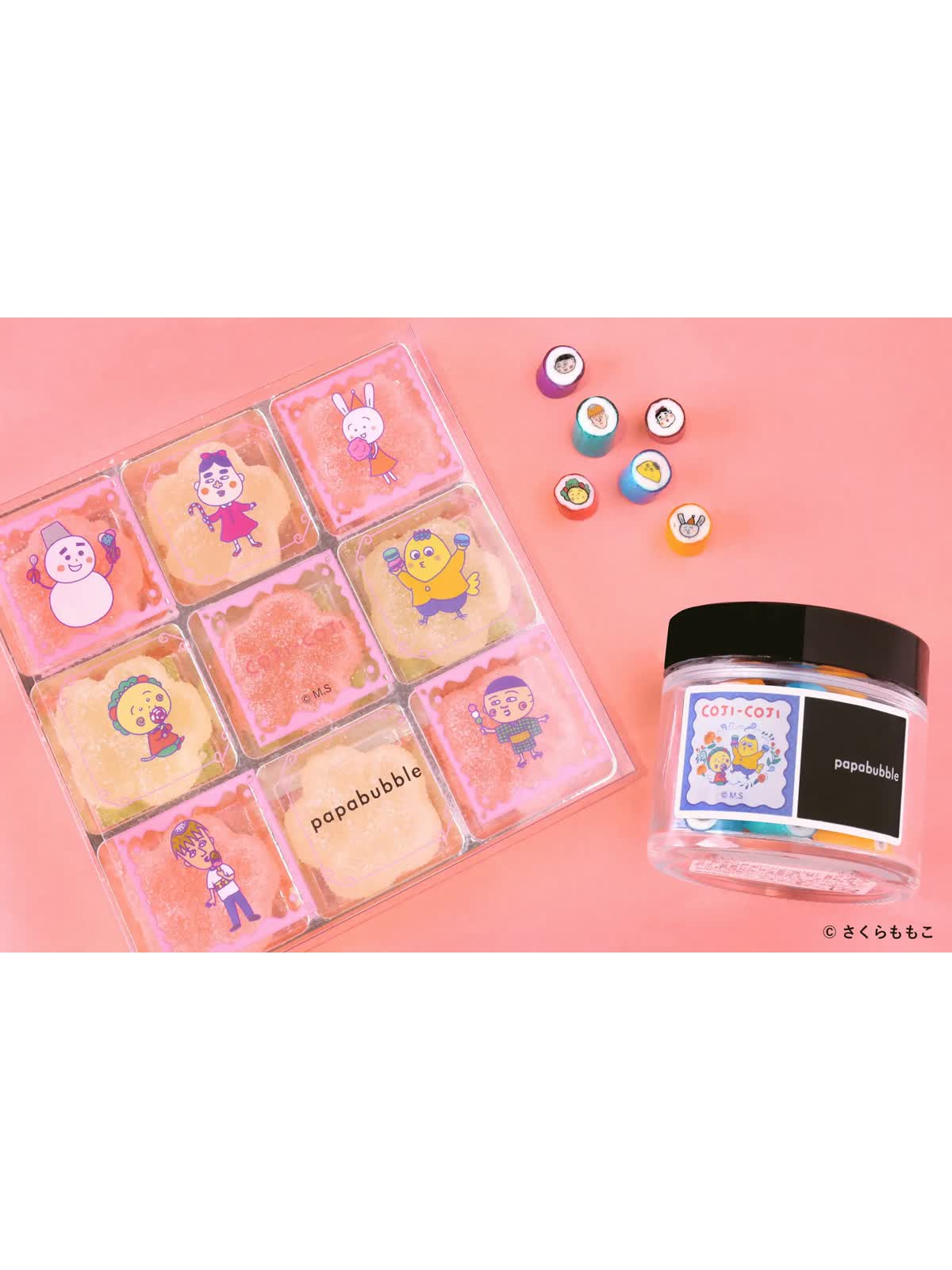 Craft Candy Theater「PAPABUBBLE/パパブブレ」は、さくらももこ原作の「COJI-COJI(コジコジ)」の世界観をイメージしたキャンディとグミを、9月11日(木)より全国及びパパブブレ公式サイト(https://papabubble.co.jp/collections/cojicoji)にて数量限定で発売いたします。