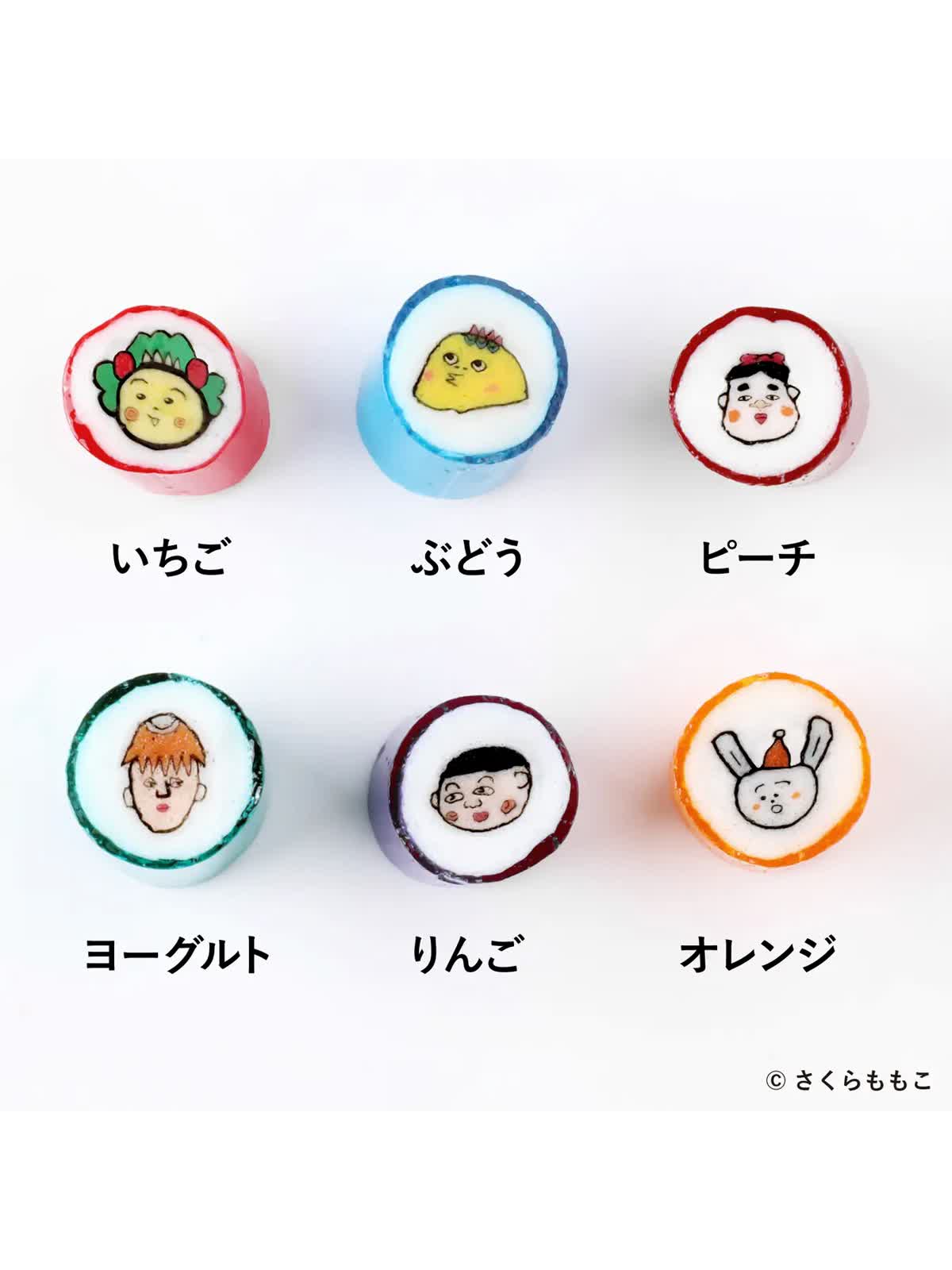 メルヘンの国に暮らす個性豊かなキャラクターたち、コジコジ、次郎、おかめちゃん、ジョニー、ハレハレ君、うさこをモチーフにしたプレミアムキャンディが登場。人気のフルーツフレーバーを中心に、見た目も楽しいカラフルな仕上がりです。