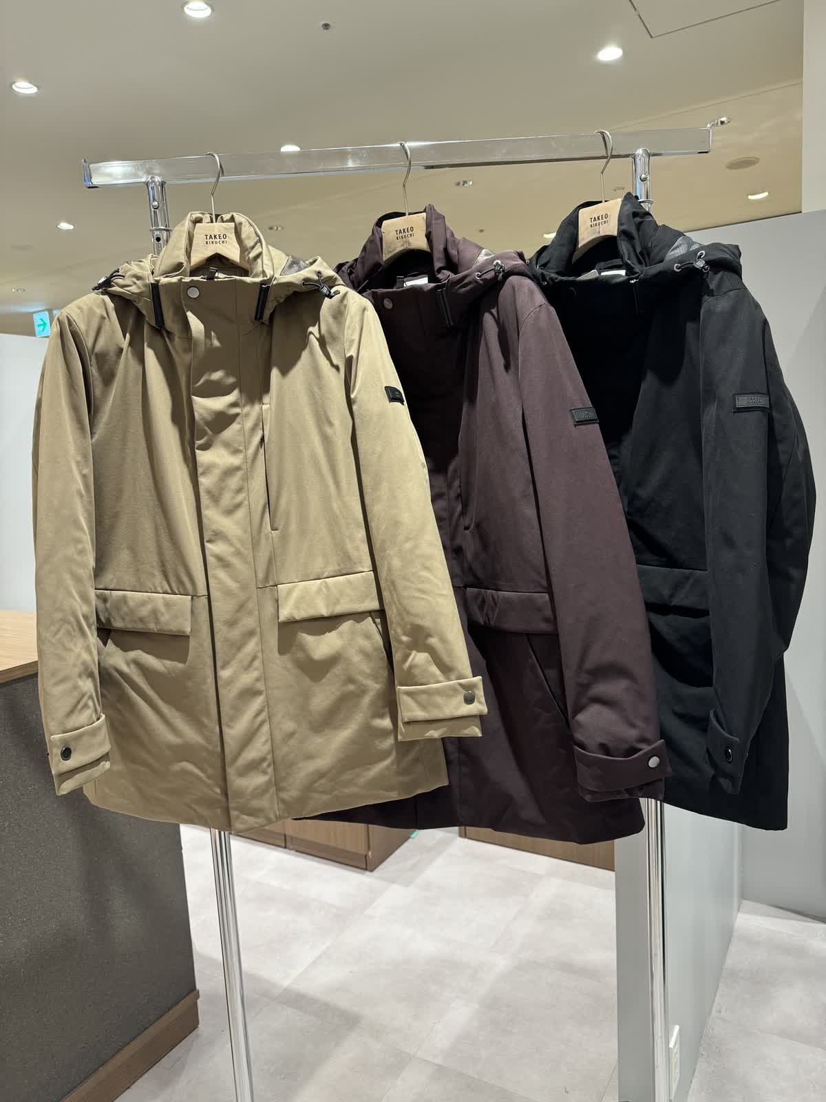 フラットな表面のストレッチ素材を使用し、防寒性とスタイリッシュさを両立させたダウン