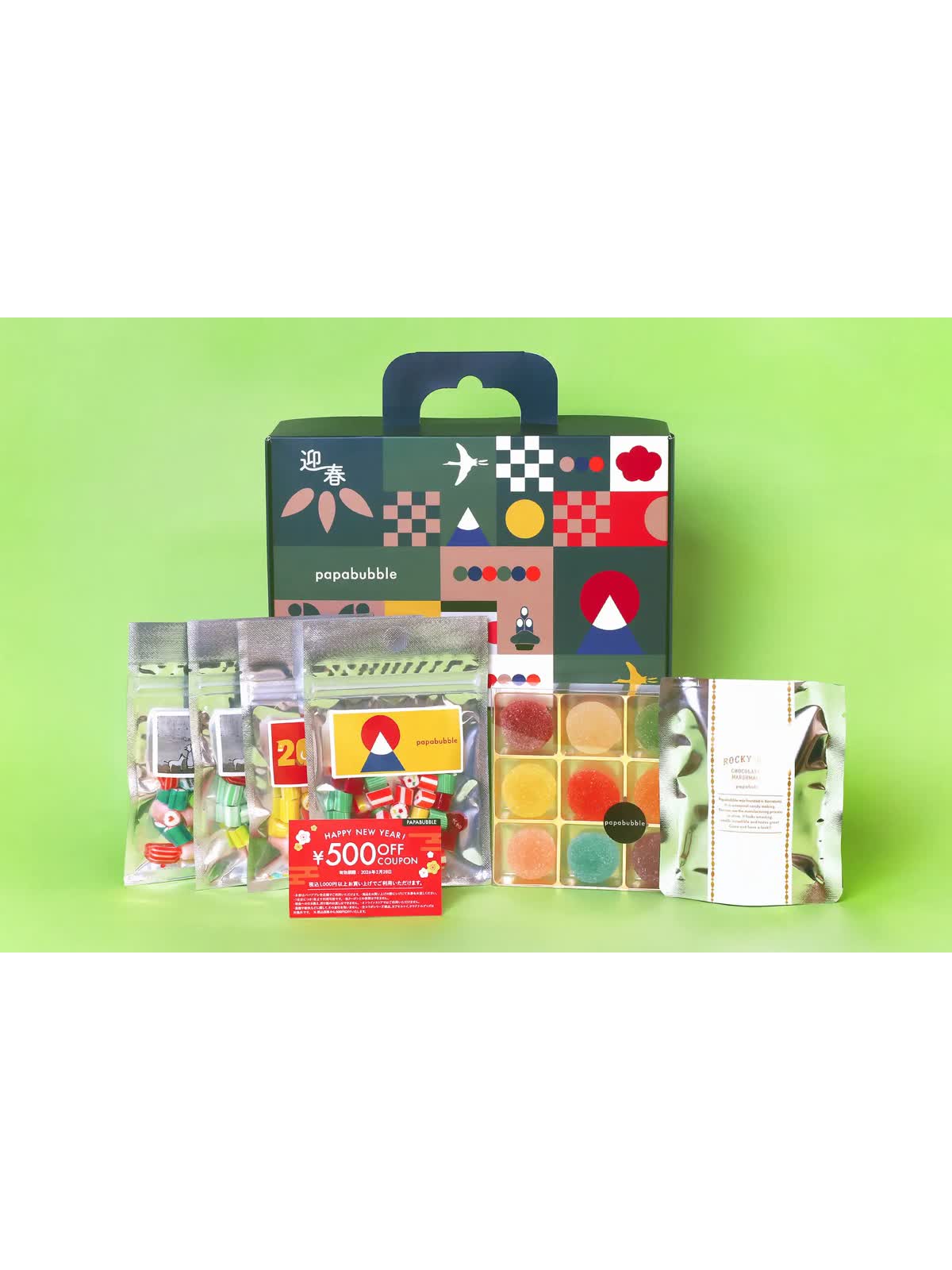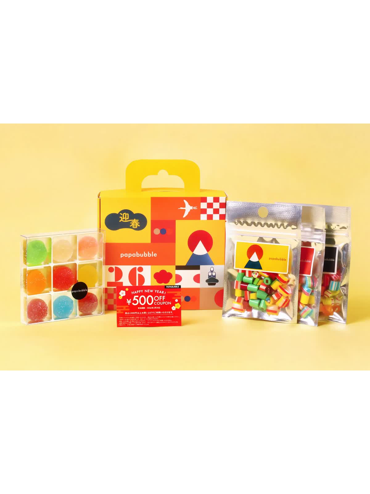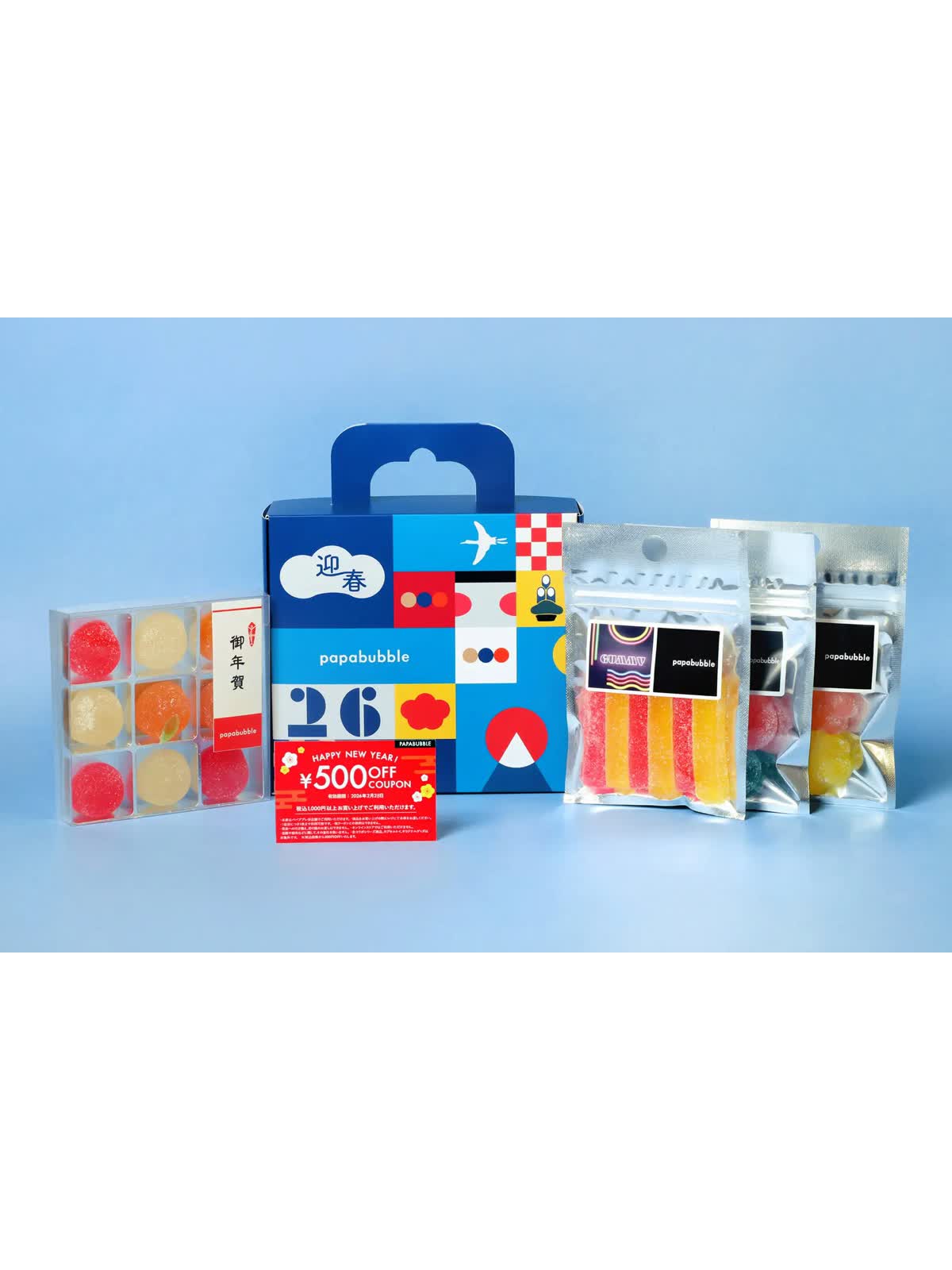 ・内容:アシドグミ×1袋、ランダムグミ×1袋、ハードグミ×1袋、お年賀バブレッツ×1箱、クーポン×1枚