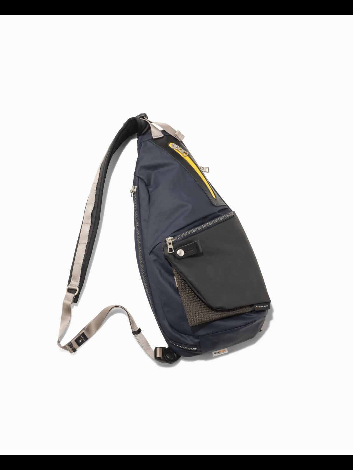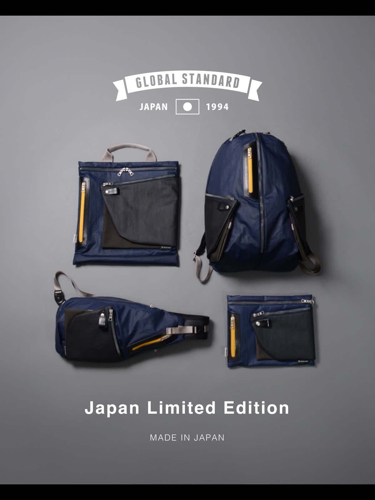止水ファスナーや内装生地にもイエローを配したインパクトあるカラーリングさせた日本国内の直営店限定シリーズです。
