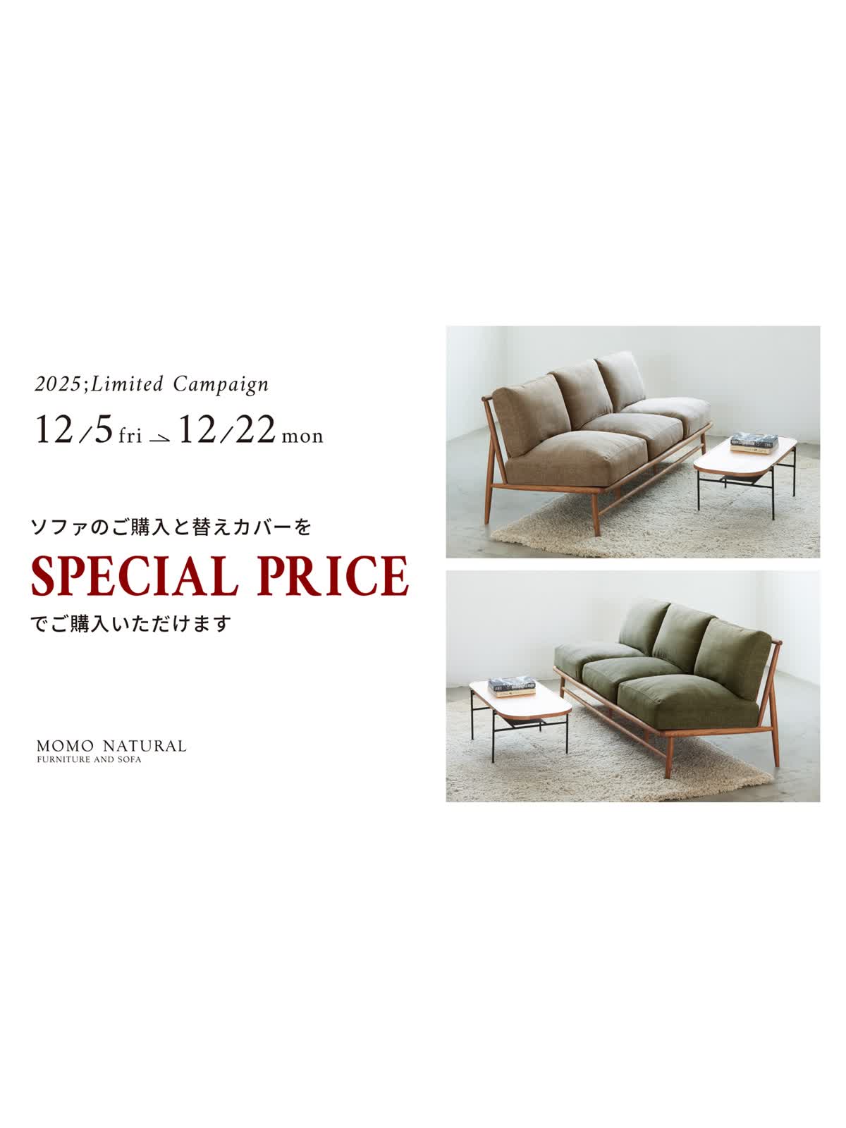 また、すでにモモ ナチュラルのソファをお使いいただいている皆様にも、より快適なソファ時間をお過ごしいただける機会となっております。