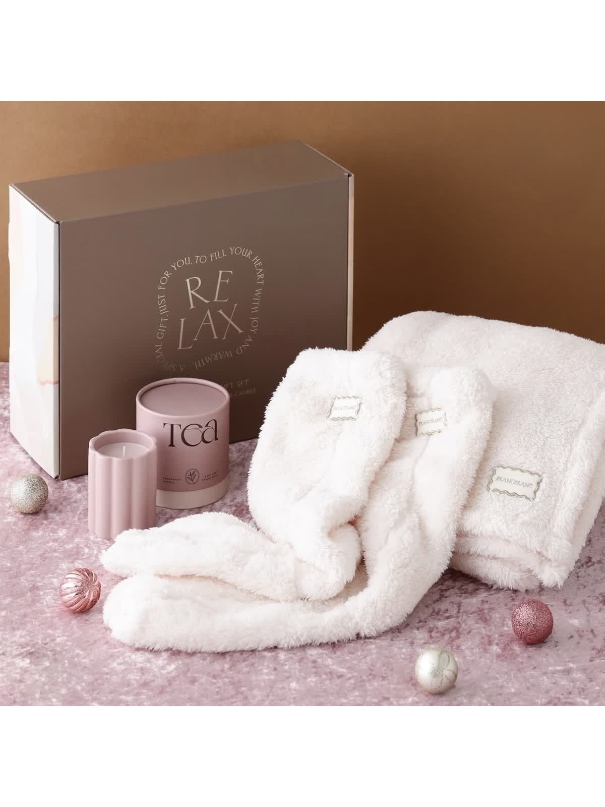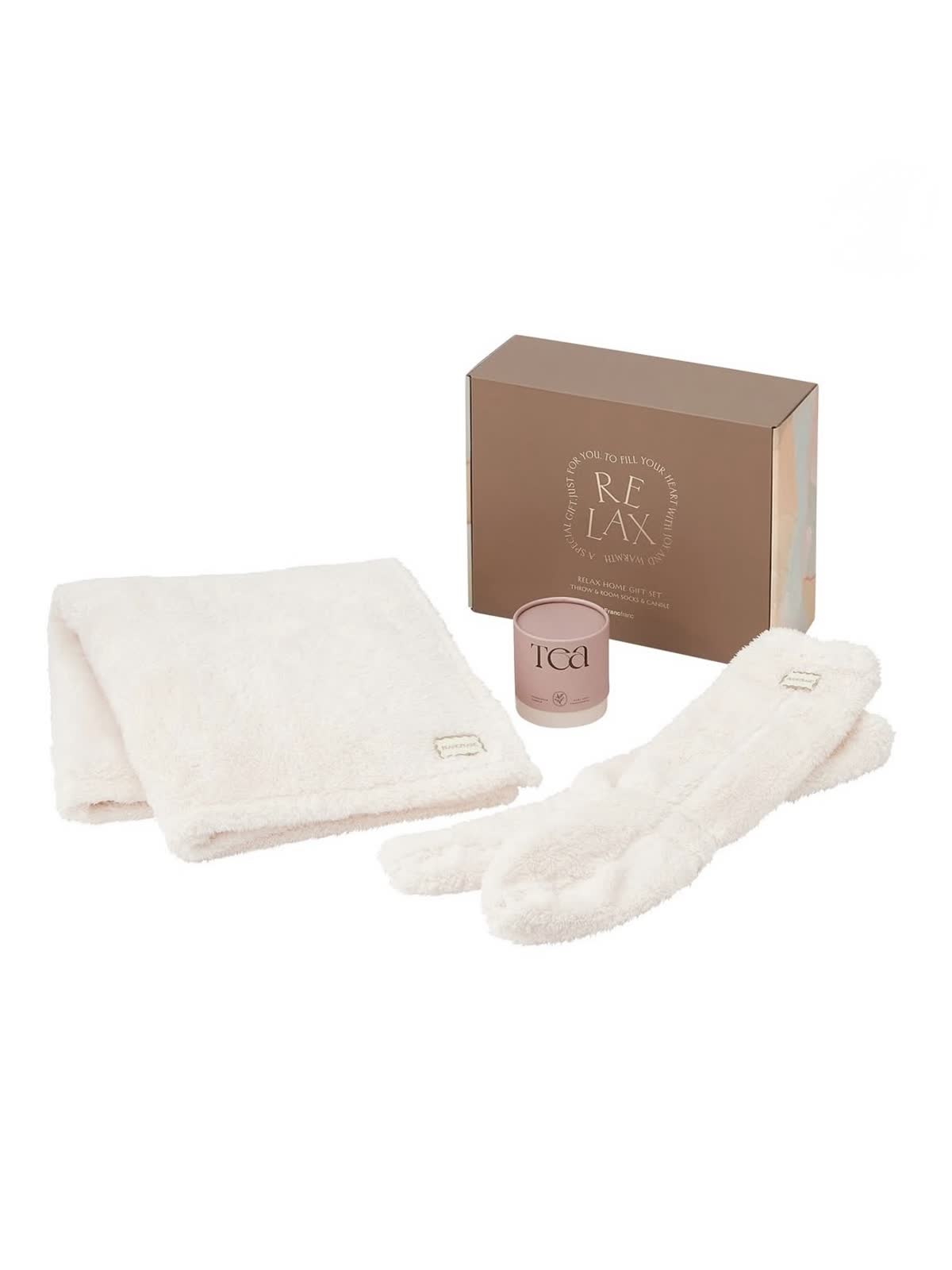 冬の穏やかなひとときを過ごせるスロー、ルームソックス、フレグランスキャンドルのギフトセットでふんわりとしたやわらかな肌触りのアイテムに包まれながら、キャンドルの香りと灯りで心までほっと癒される、心地よいひとときをお楽しみいただけます🕯️.+。