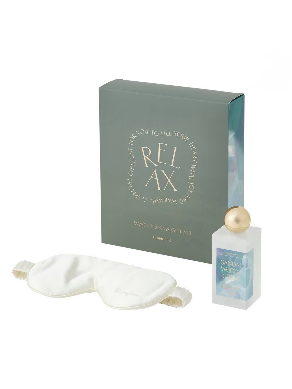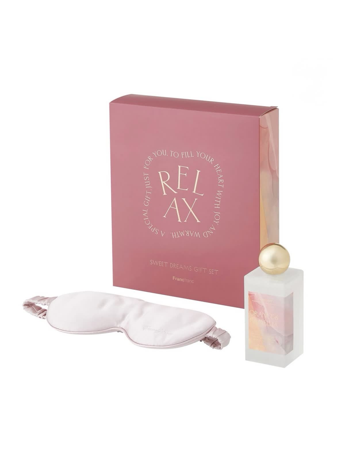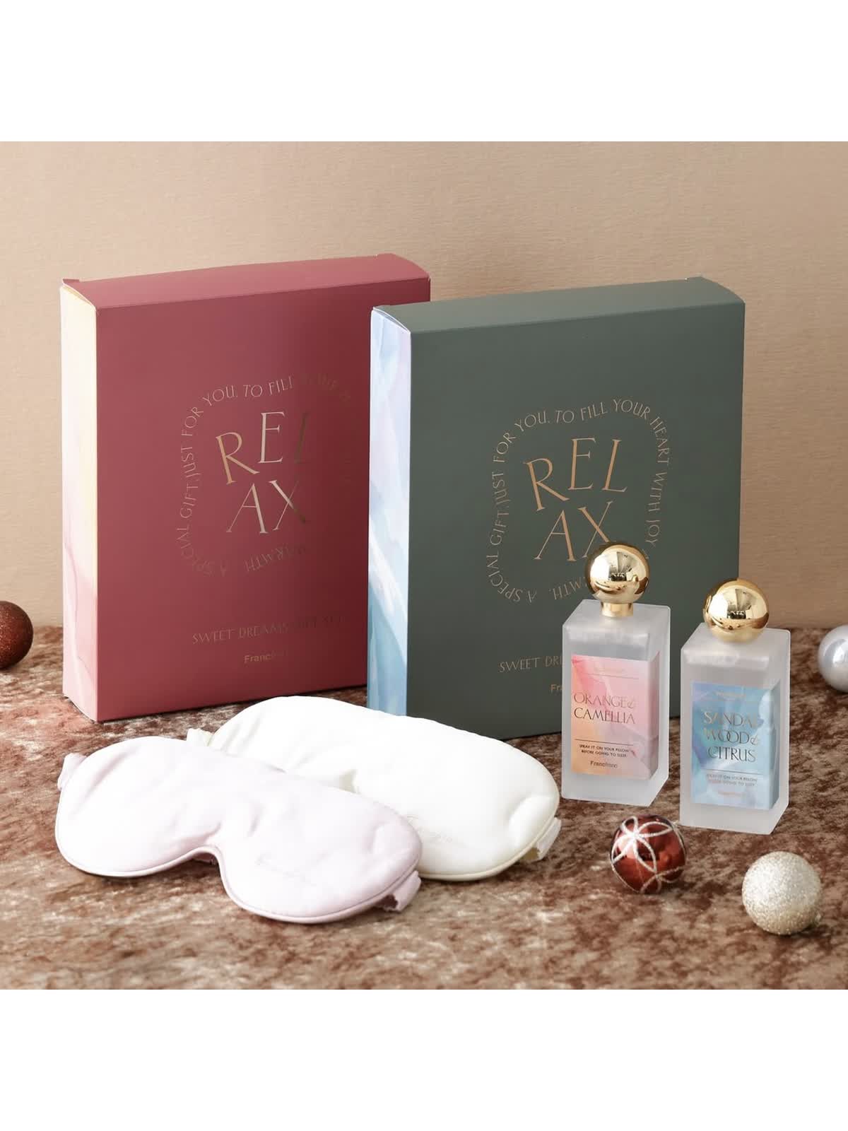 ピローミストとシルク 100%のアイマスクをセットにした、就寝前のリラックスタイムを彩るギフトセット「いい夢を」という気持ちを込めて、大切な方へそ