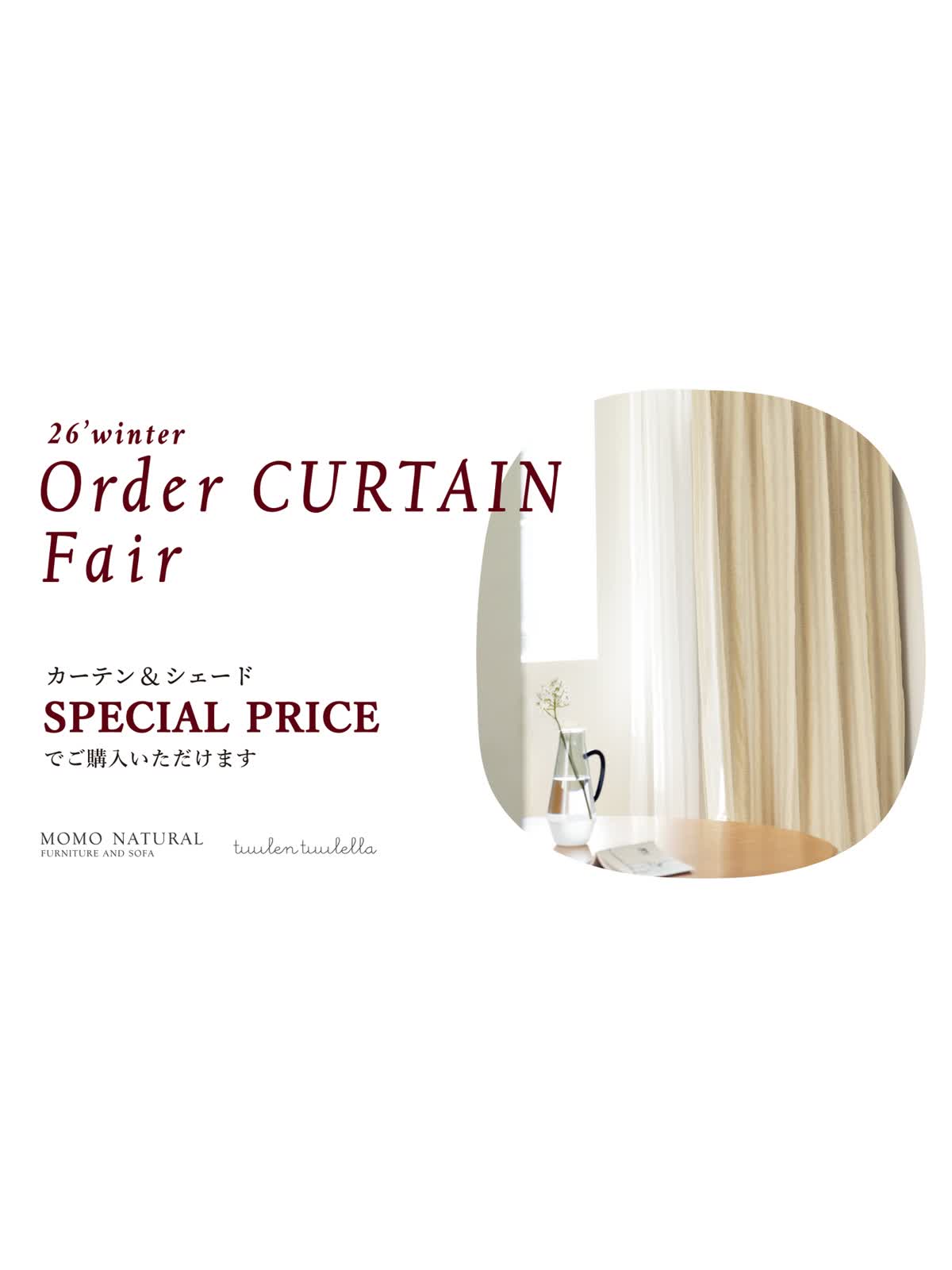 モモ ナチュラルでは2026年1月9日(金)よりオーダーカーテンフェアを開催いたします。