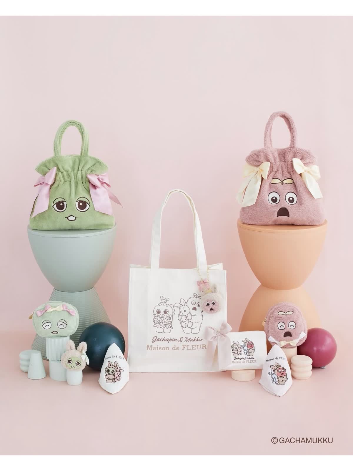 ルクア 5F メゾン ド フルール 『ガチャピン・ムック』と 初のコラボレーションアイテムが登場 !!🌟 ガチャピン・ムックを優しいカラーのボア生地で表現したバッグやポーチの他、うさぎを抱えた姿が可愛らしい人気のスクエアトートなど全10種! バッグとセットで付けたいふわふわのぬいぐるみチャームにも注目です◎ ショップニュース⼀覧