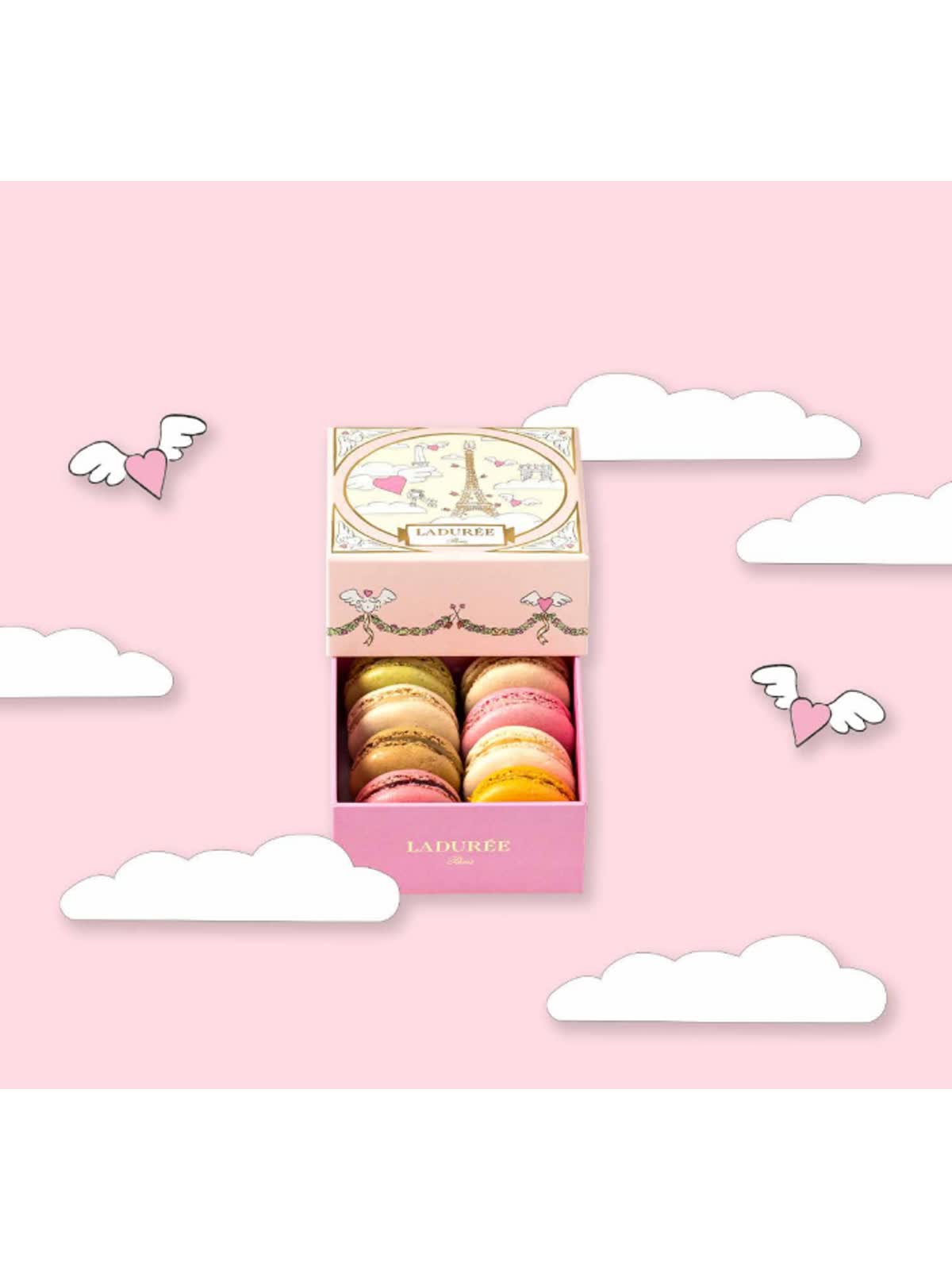 遊び心あふれるロマンティックなパリを描いたマカロンボックス。