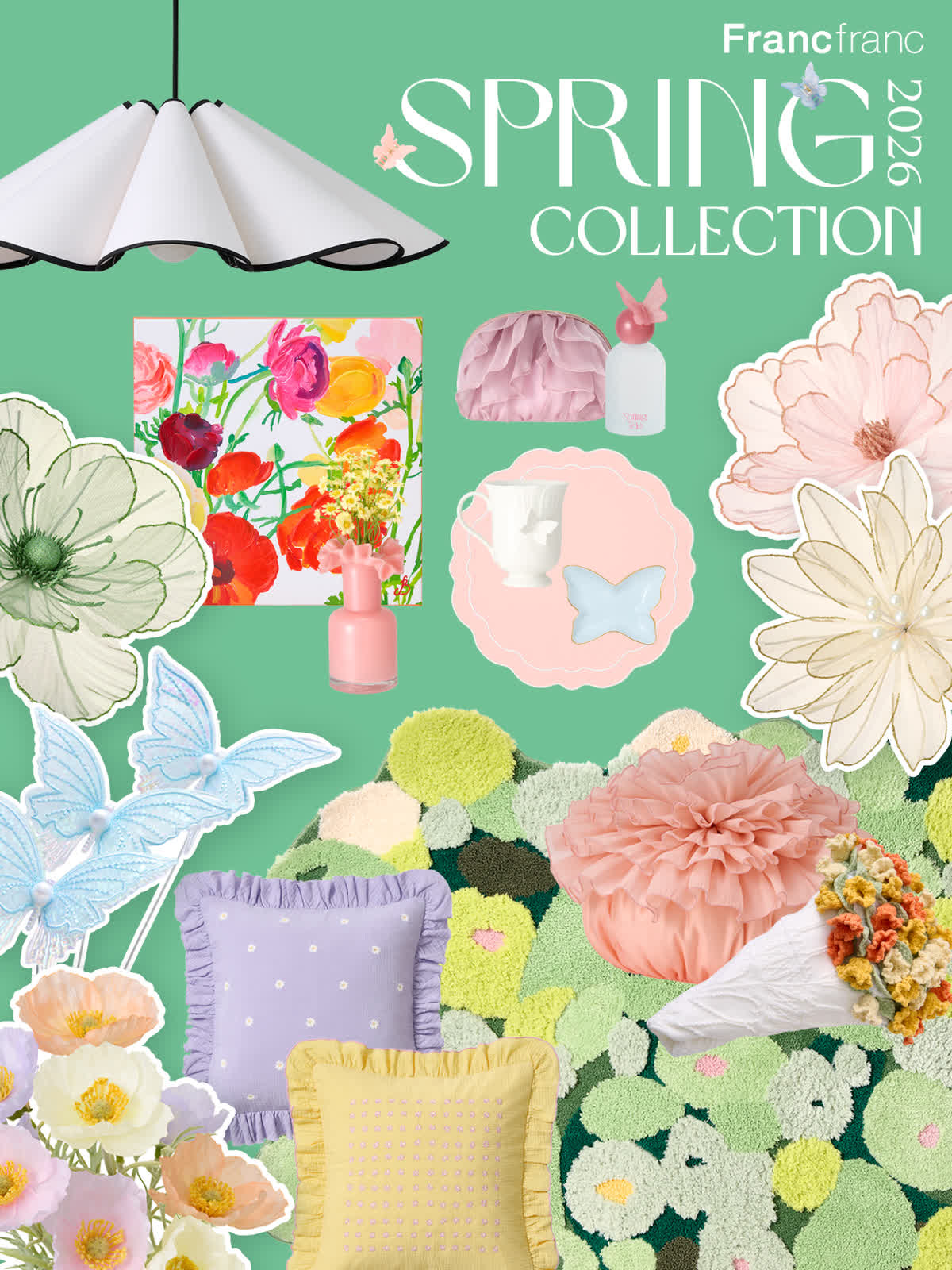 部屋いっぱいに広がる春の香りや色彩、遊び心のあるお花のモチーフに囲まれながら、これから始まる新しい季節を楽しむライフスタイルをFrancfrancらしい世界観で提案します🌸