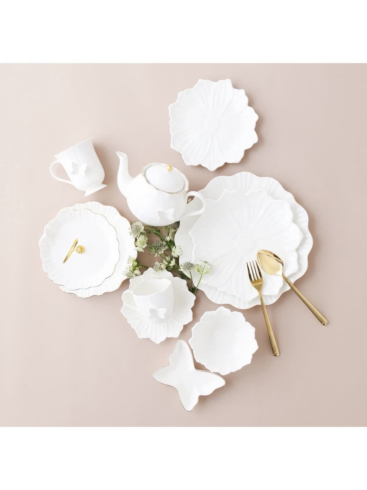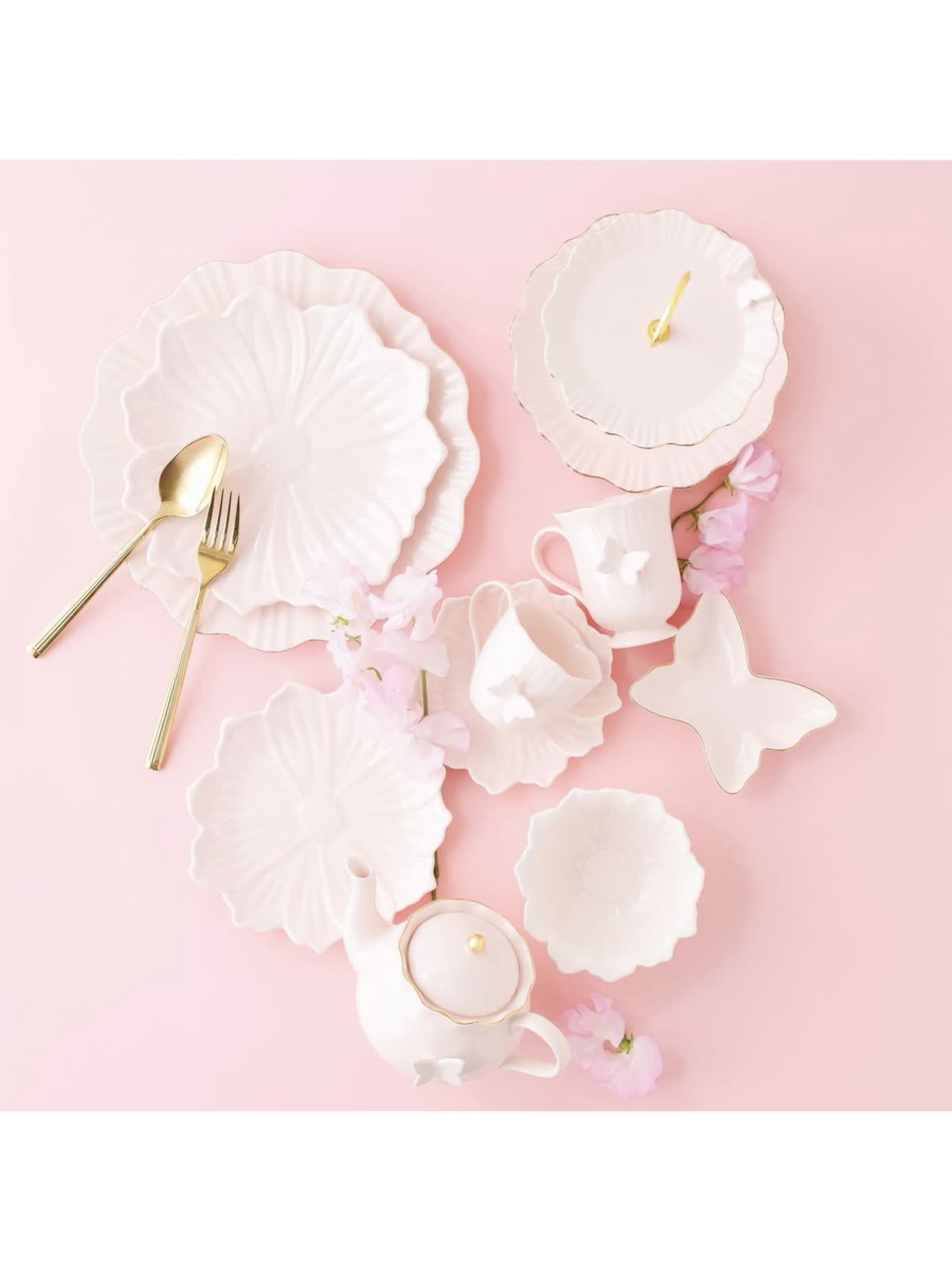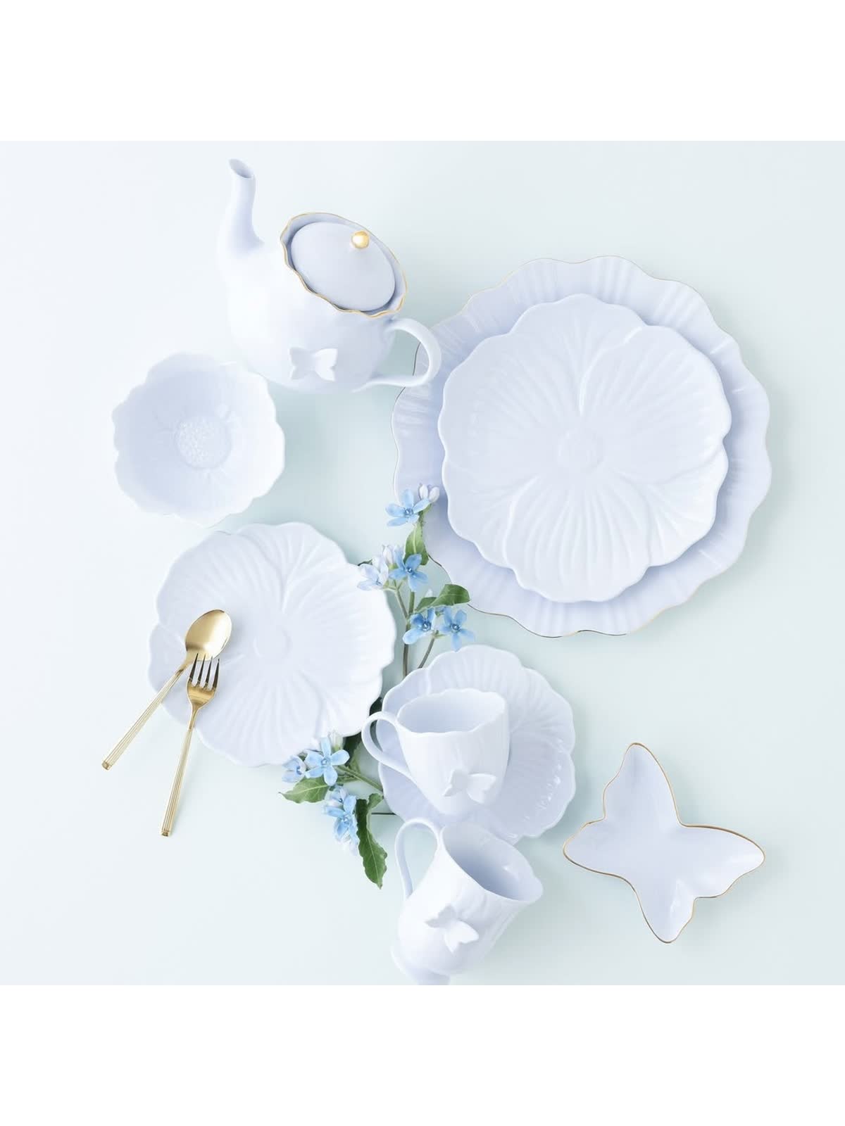 花をモチーフにしたプレートやカップ&ソーサー、テイーポット、マグ、ケーキスタンドまで揃う、可憐なテーブルウェアコレクションです🍰