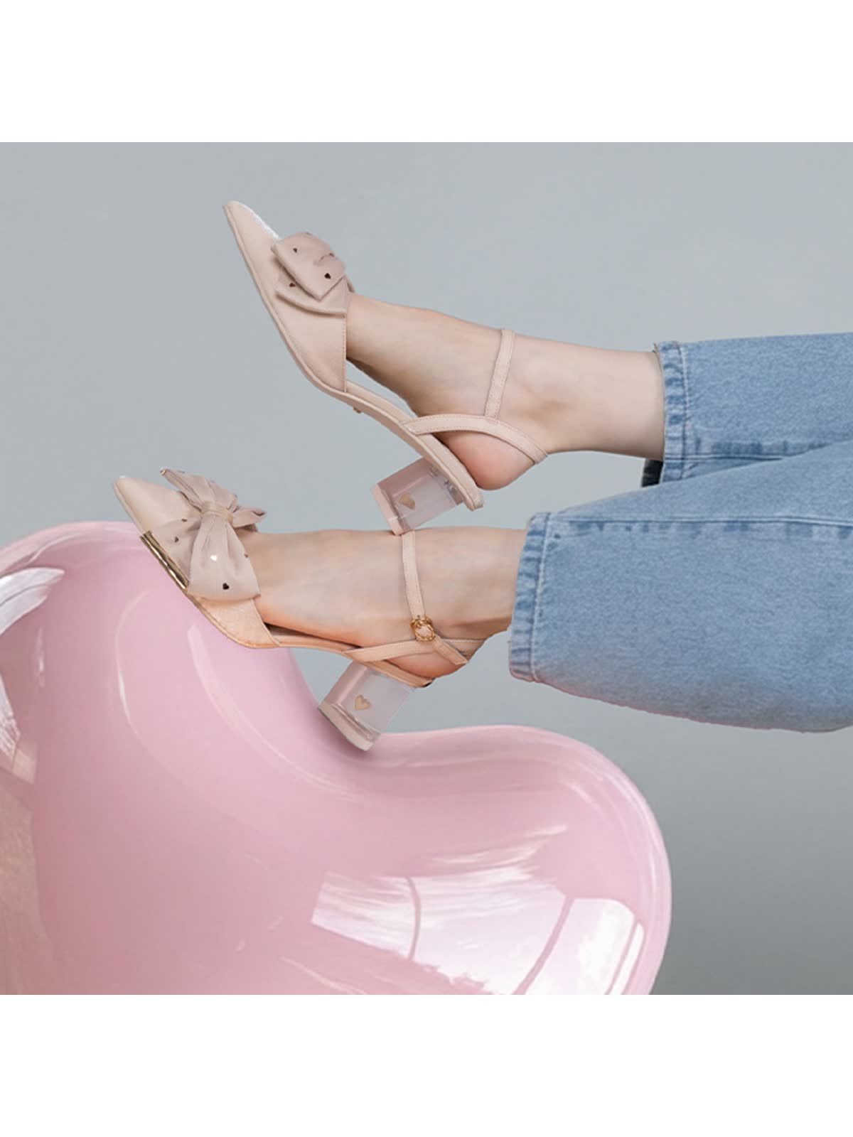繊細なハートスパンコールを施したリボンが印象的なバックストラップパンプス。