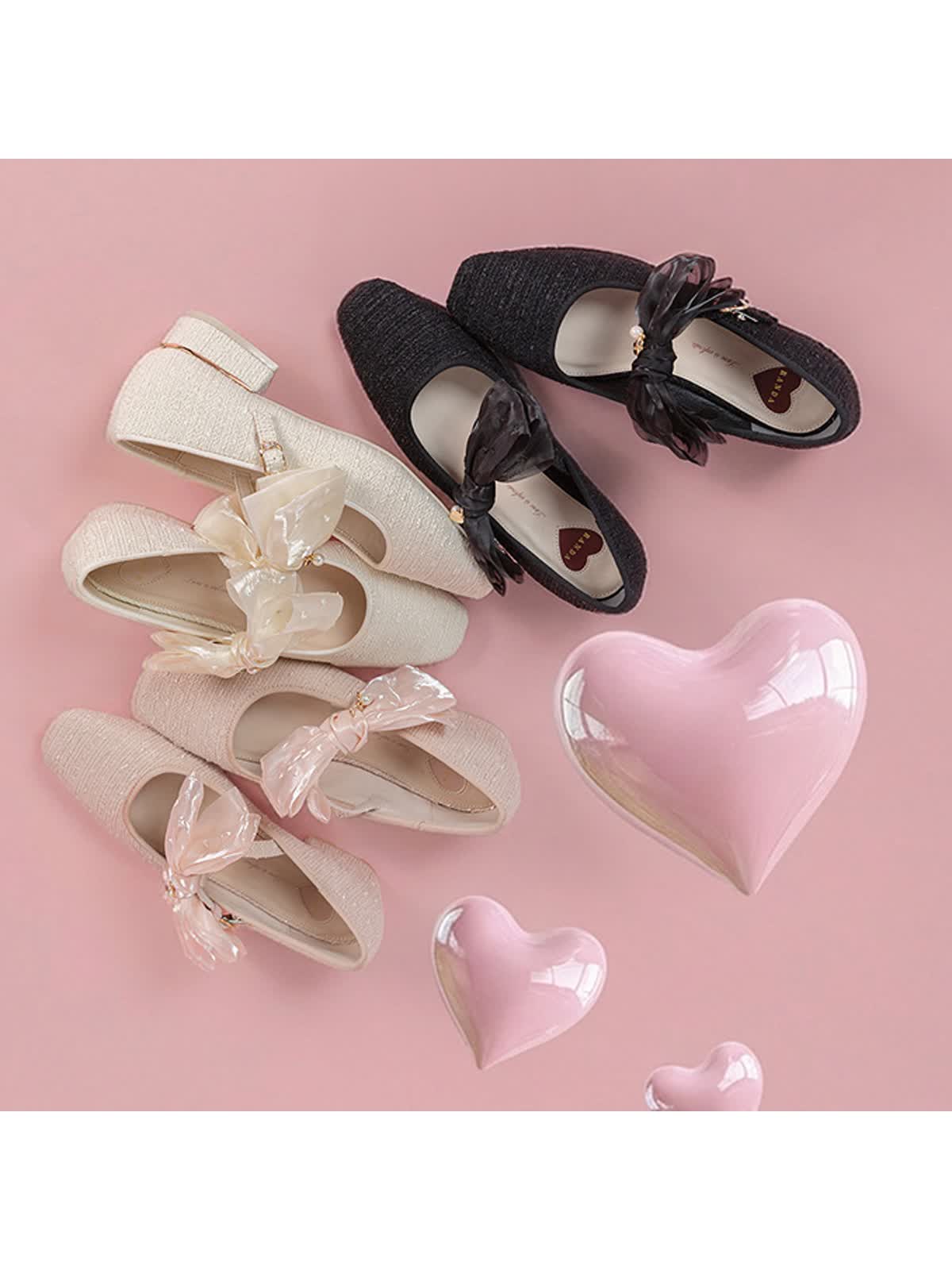 シアーリボン×ハートで可愛さをぎゅっと詰め込んだストラップパンプス。